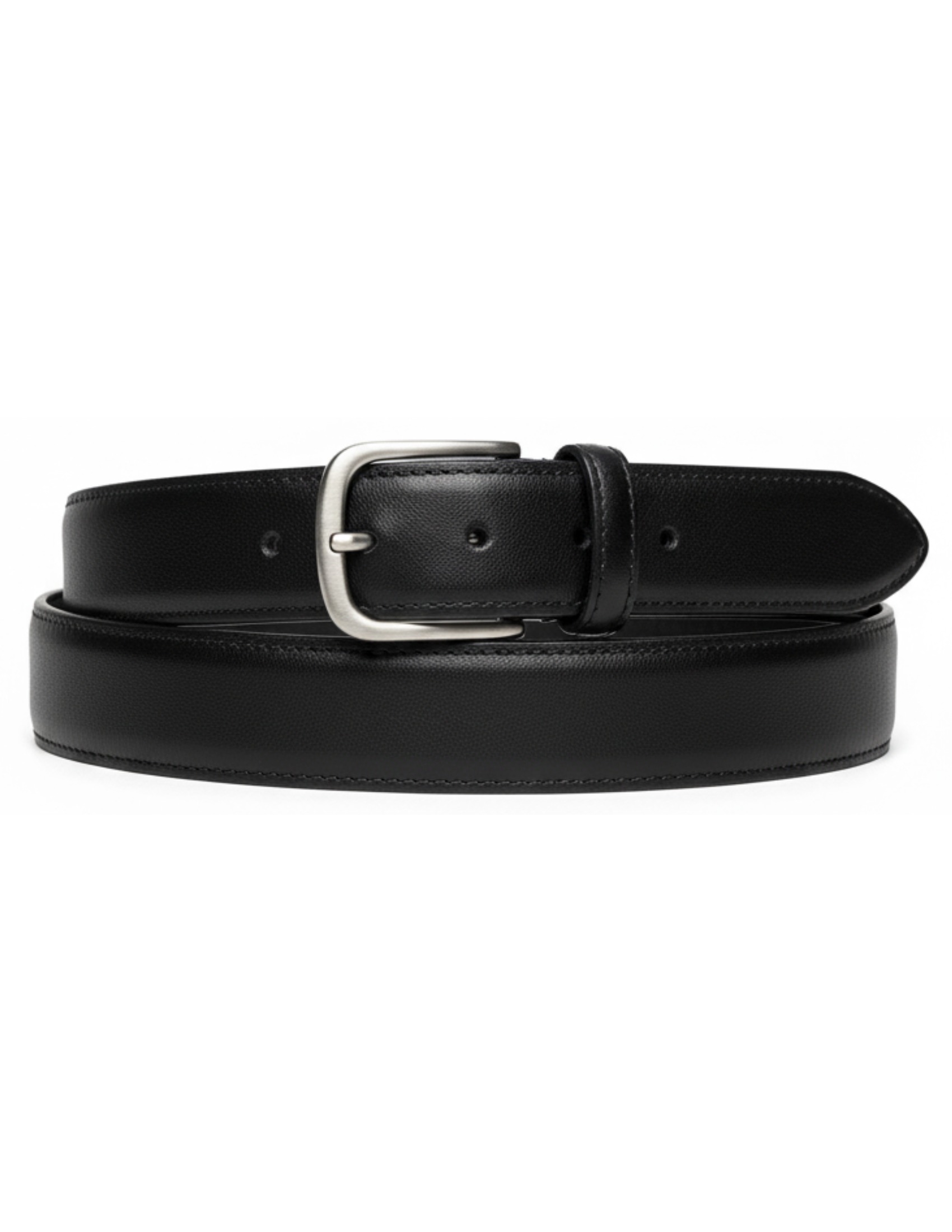 This Alberto Luti belt is an iconic accessory of refined craftsmanship, perfect for completing both formal and casual outfits. Crafted from premium black "Soave" leather, it offers an incredibly soft texture and a smooth, matte finish that lends a touch of understated, timeless elegance. Refined details, typical of Alberto Luti craftsmanship, include the genuine black leather loop, finished with precise, durable stitching. The brushed silver-tone metal pin buckle completes the design with a touch of understated modernity. Made entirely in Italy, this belt represents a lasting investment in style, combining superior quality and Alberto Luti's signature Italian design.