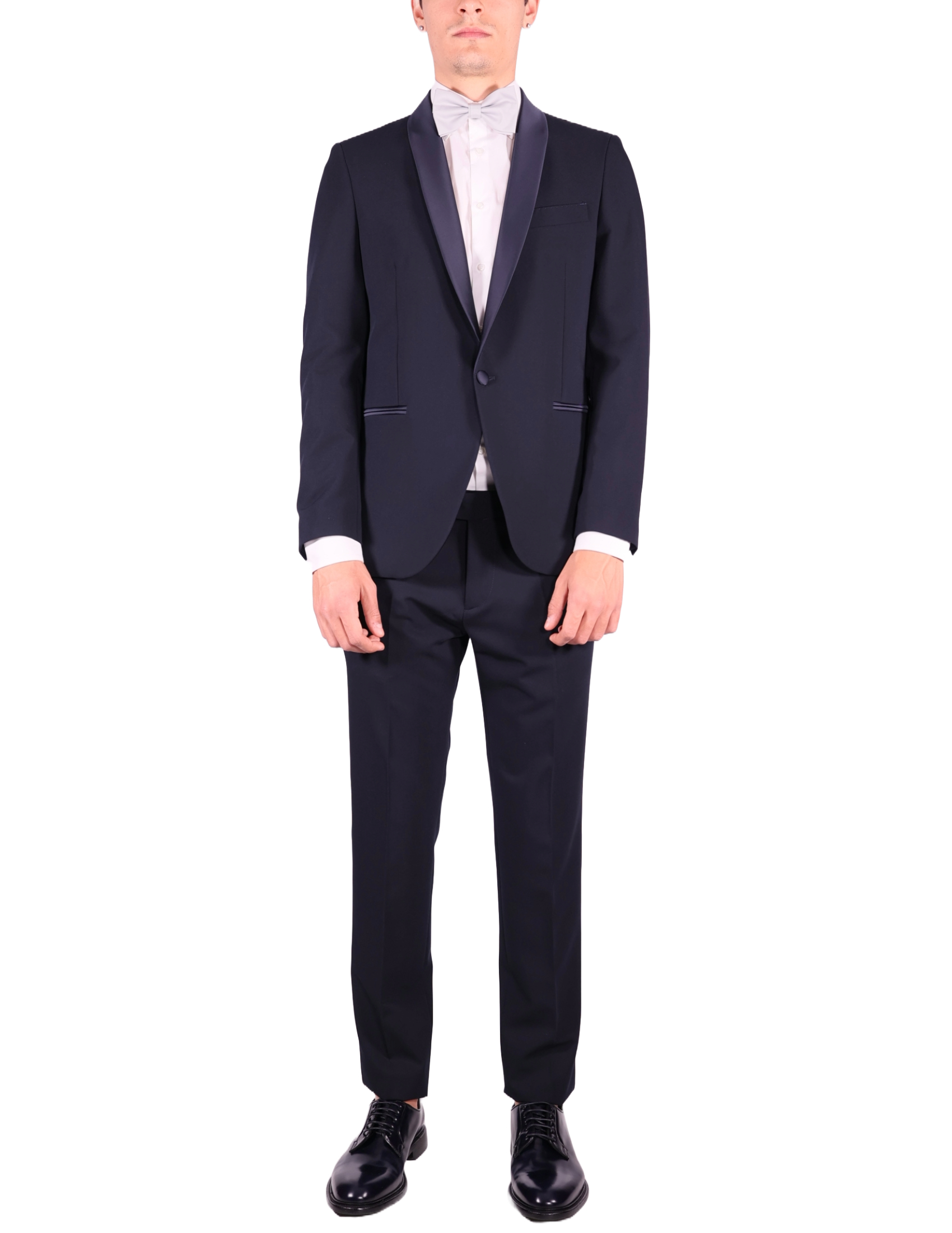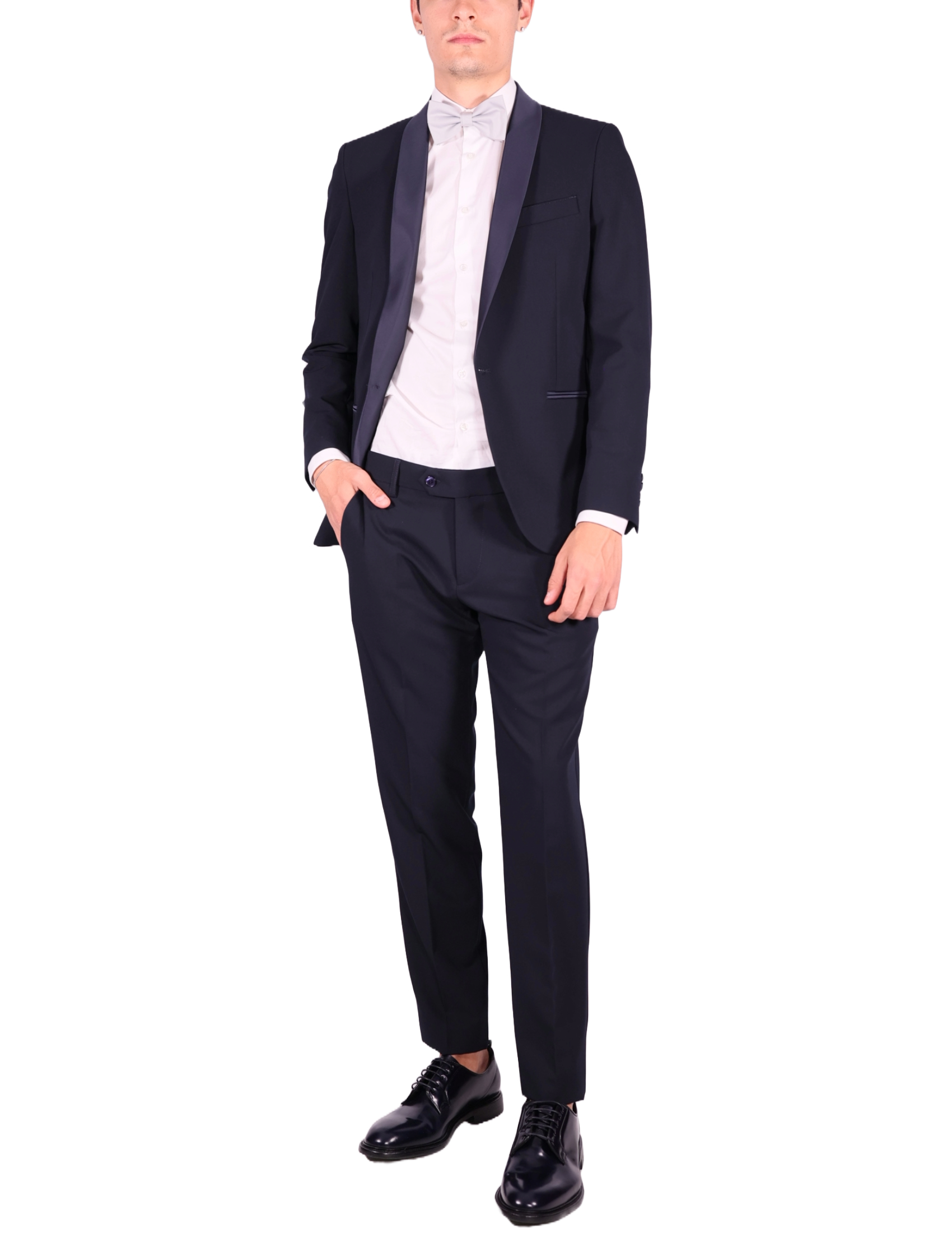 Elegant and refined, this formal suit features a distinctive satin shawl collar for a sophisticated touch. It is completed with a welt chest pocket, two side welt pockets, and a single back vent. Fully lined for maximum comfort and a flawless fit, its the perfect choice for ceremonies, formal evenings, or special occasions.