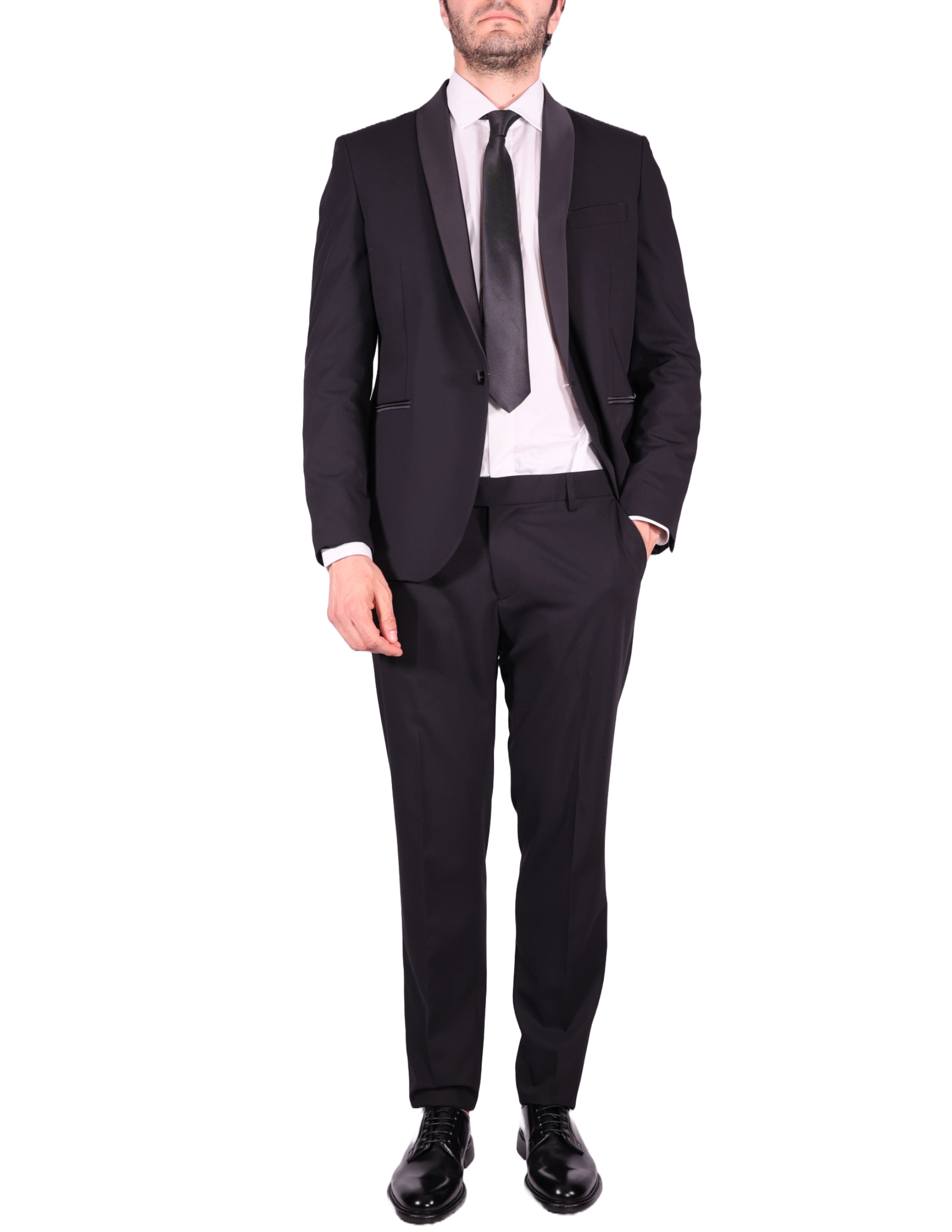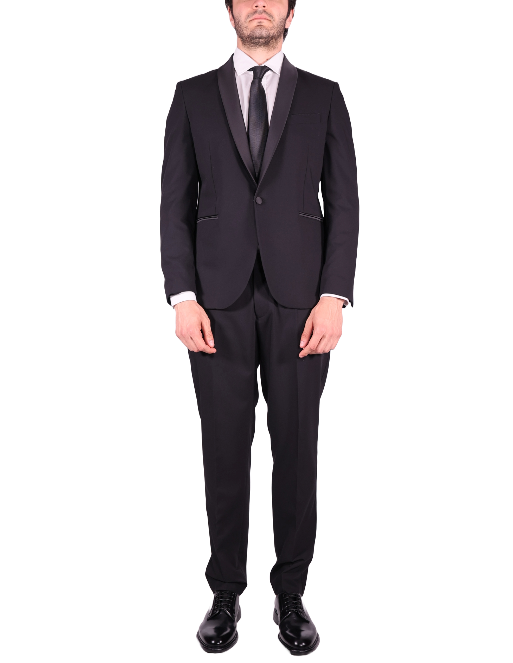 Elegant and refined, this formal suit features a distinctive satin shawl collar for a sophisticated touch. It is completed with a welt chest pocket, two side welt pockets, and a single back vent. Fully lined for maximum comfort and a flawless fit, its the perfect choice for ceremonies, formal evenings, or special occasions.