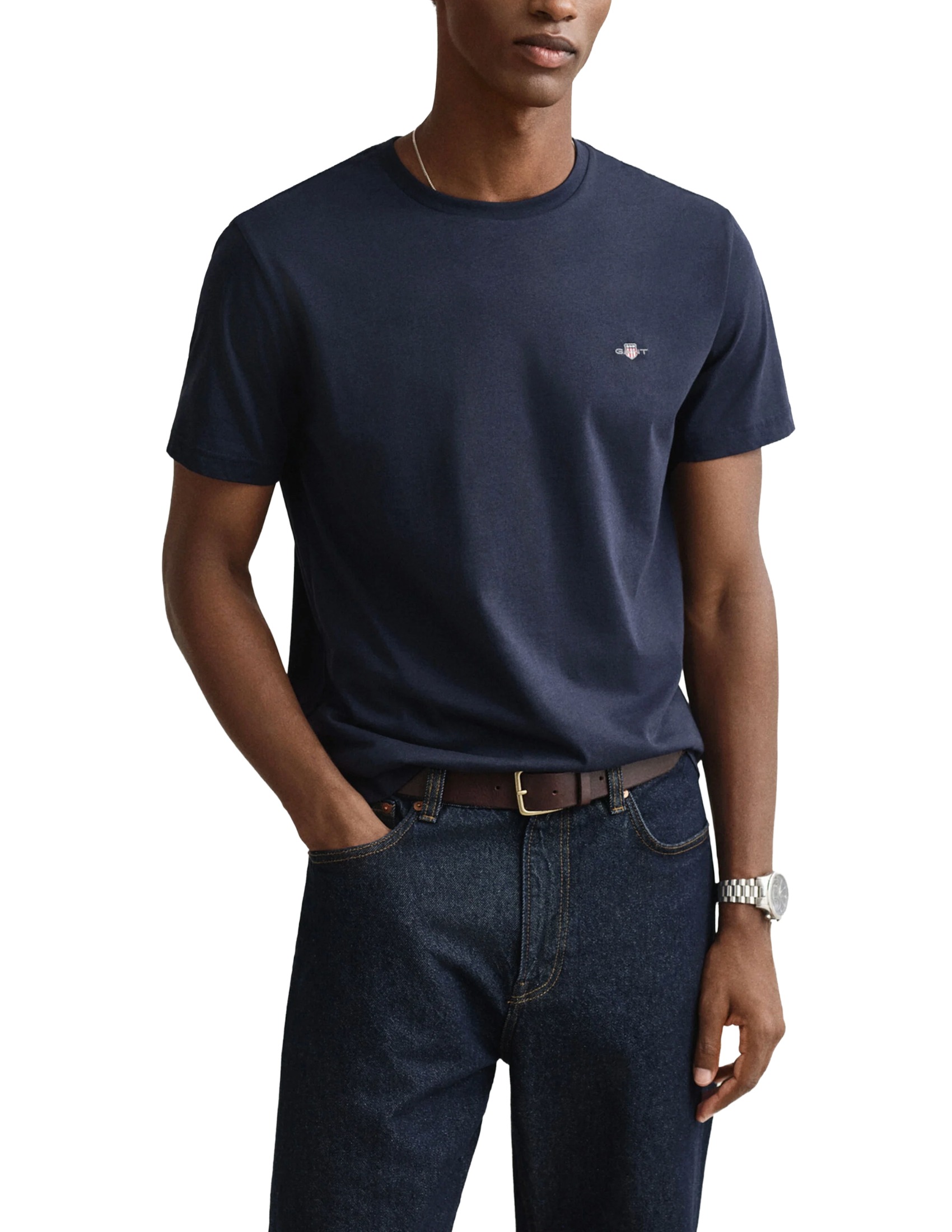 This cotton T-shirt features a thin rib at the neck for maximum comfort and a small-scale Shield graphic embroidered on the chest.
