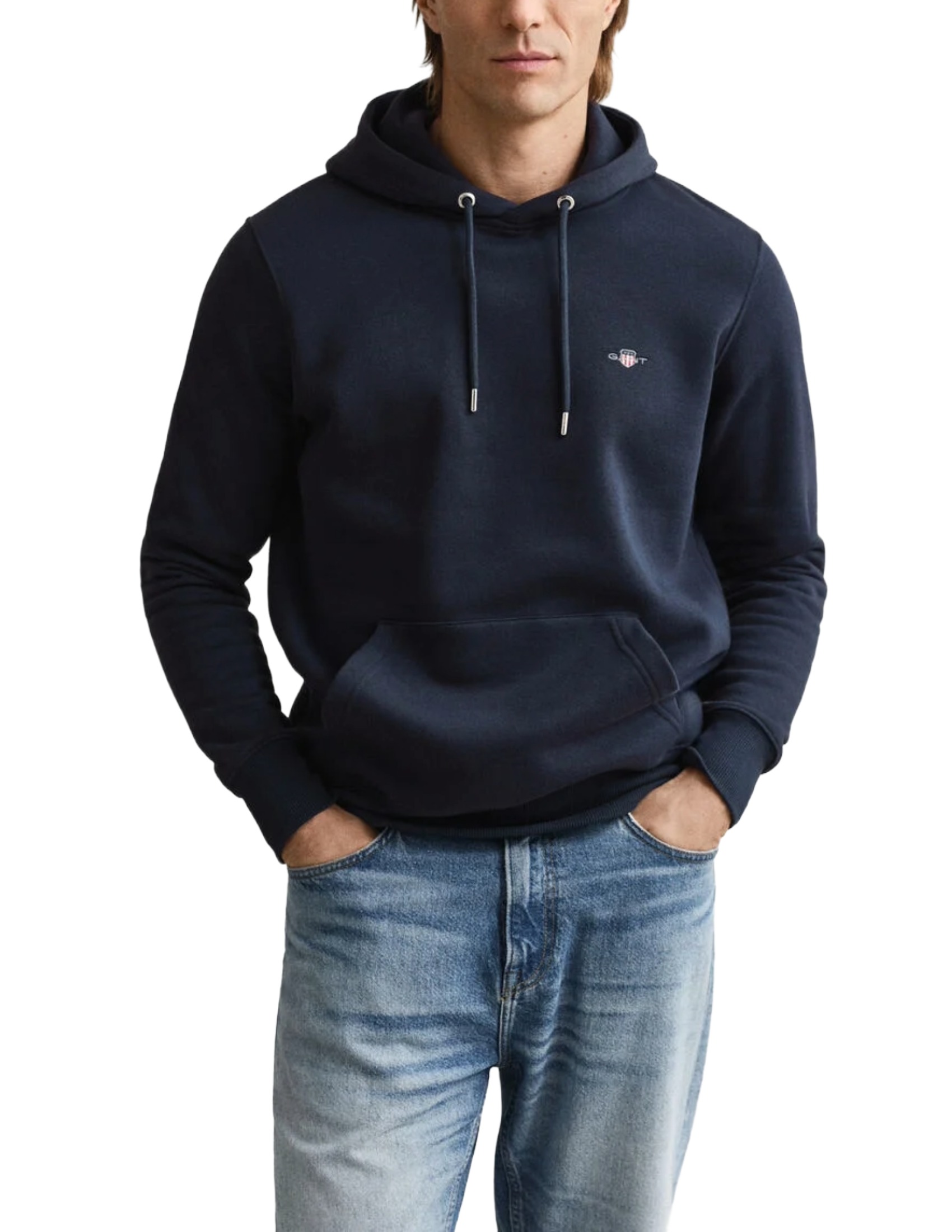This regular-fit hoodie features a small-scale Shield graphic embroidered on the chest for a tailored look. The design is completed with a kangaroo pocket and silver drawstring eyelets.