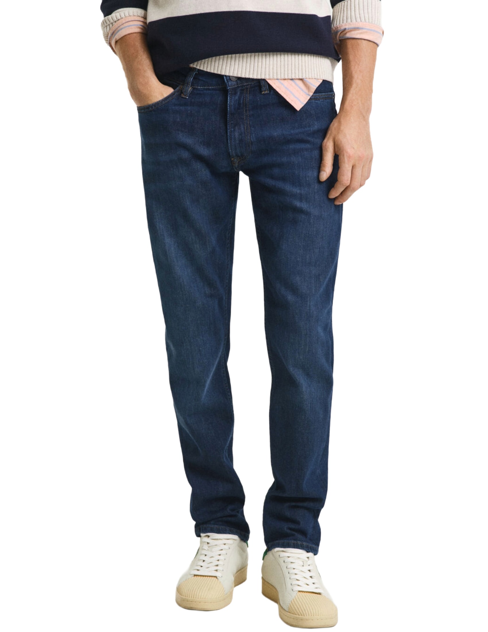 These mid-rise cotton-blend jeans with a hint of stretch feature a slim fit for a contemporary style. They feature signature shank buttons and rivets, a zip fly, and a leather logo patch on the back waistband. Pre-washed for a worn-in look.