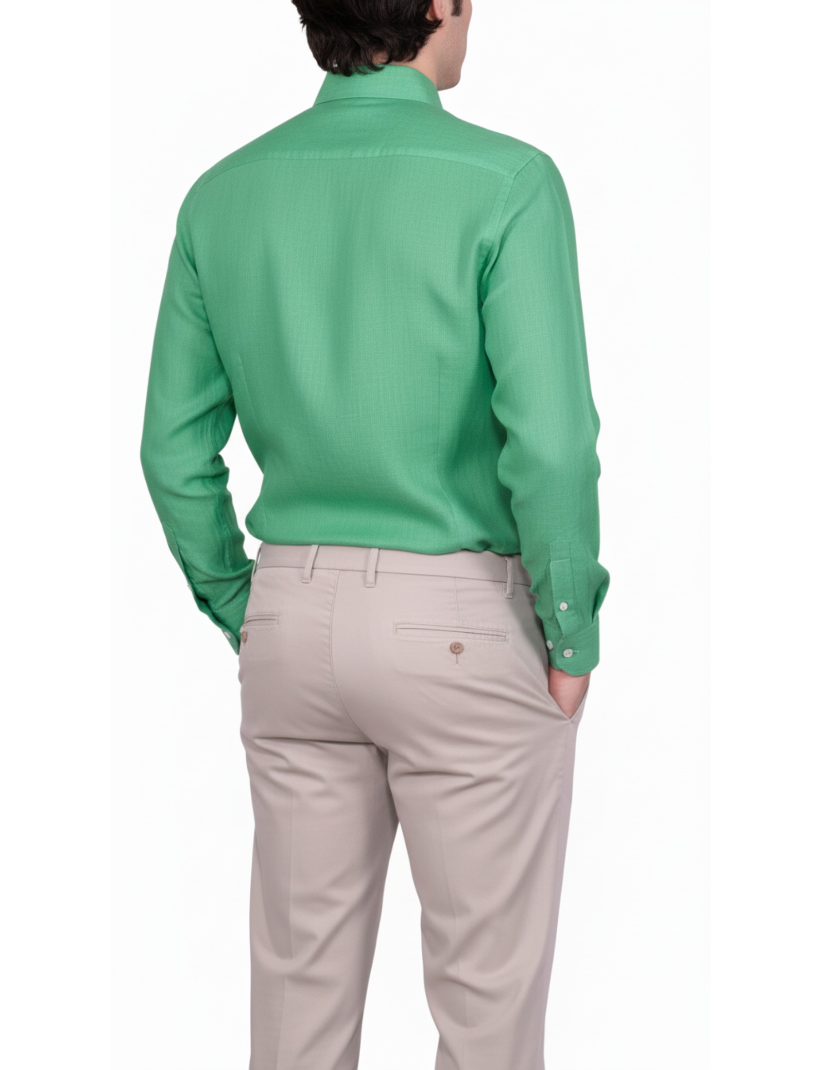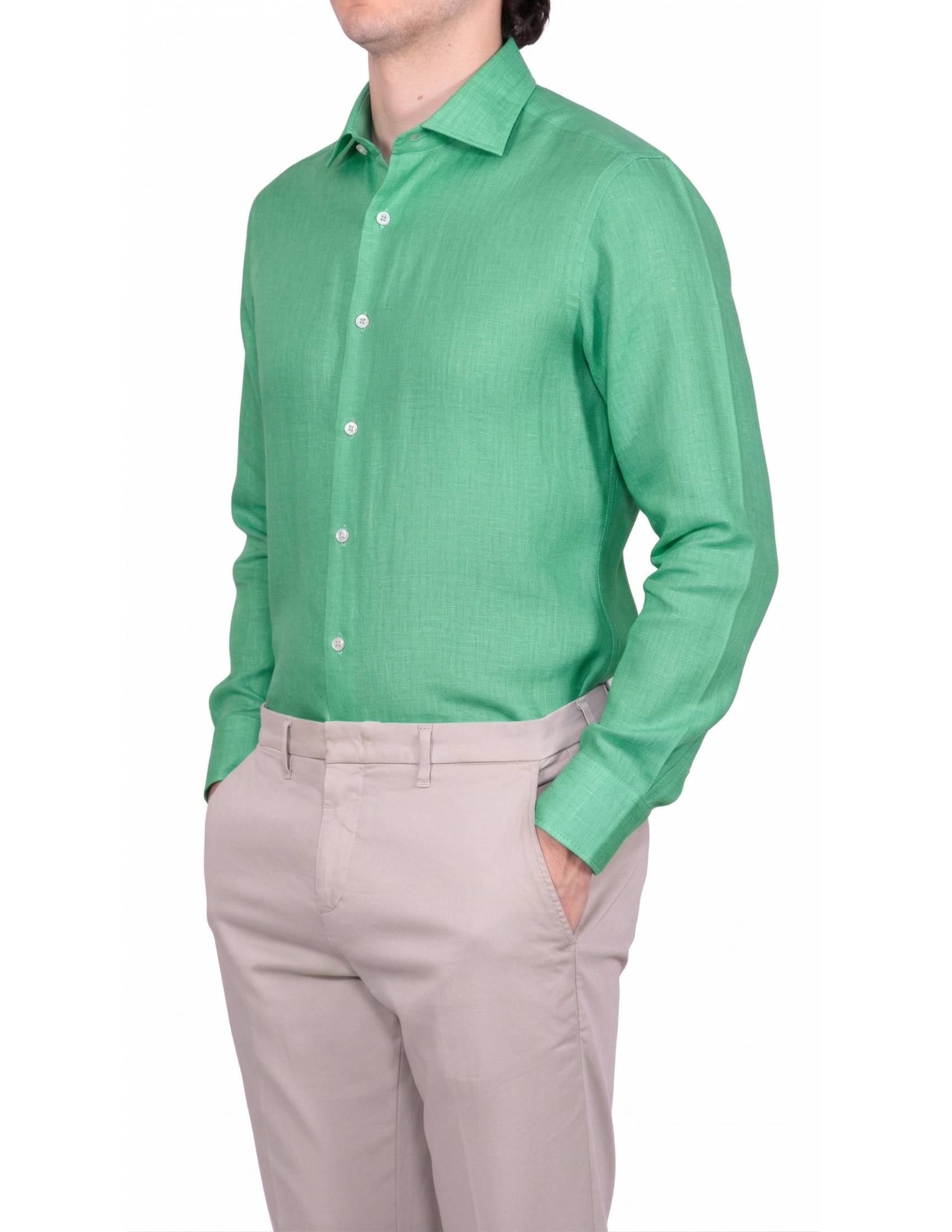 The vibrant Aqua Green hue lends the piece a touch of freshness and originality, evoking the colors of the sea and nature. The characteristic irregular texture of linen lends a pleasant visual dynamism and a relaxed allure, making it a versatile and distinctive piece. The clean design, with a classic collar and regular fit, ensures optimal comfort for every occasion.