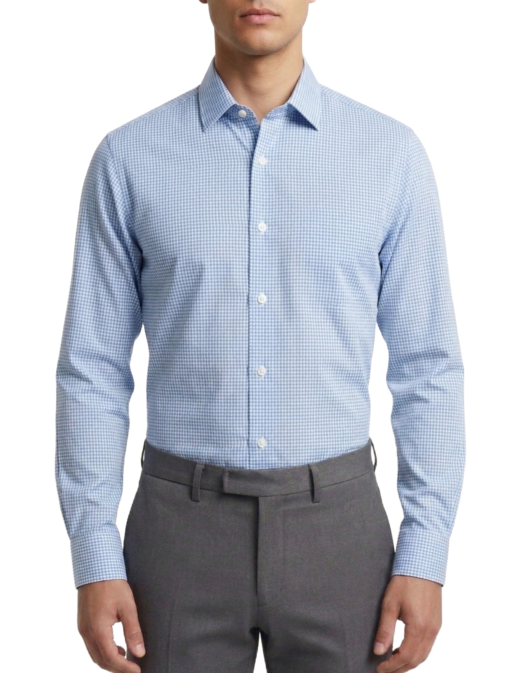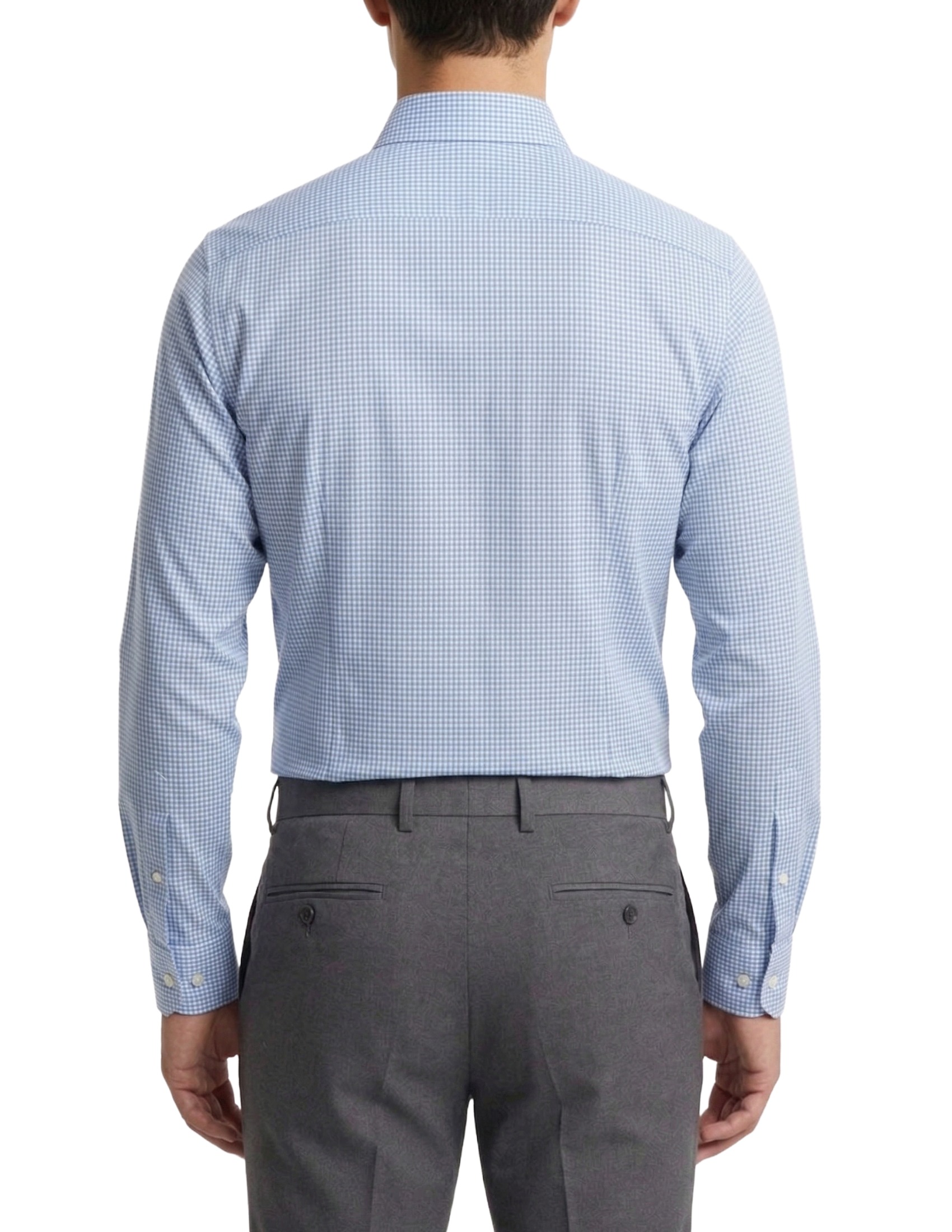 This shirt is the quintessential business-casual style, perfect for those seeking a refined alternative to the classic solid color. Featuring a dense white and light blue micro-check pattern, it offers a dynamic and modern look while maintaining an understated elegance suitable for any professional setting.