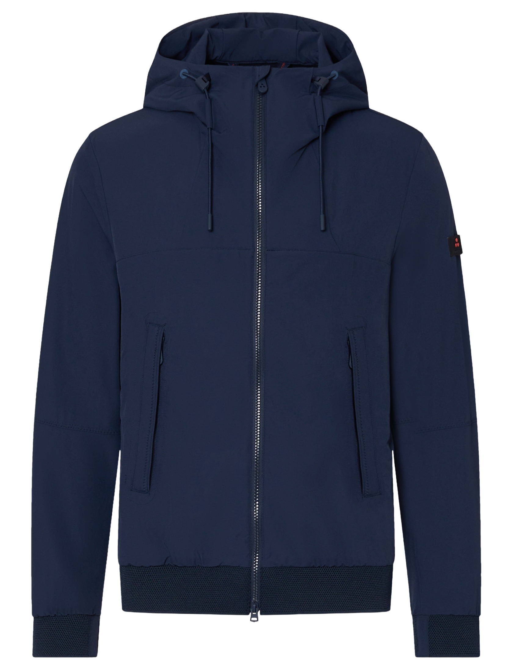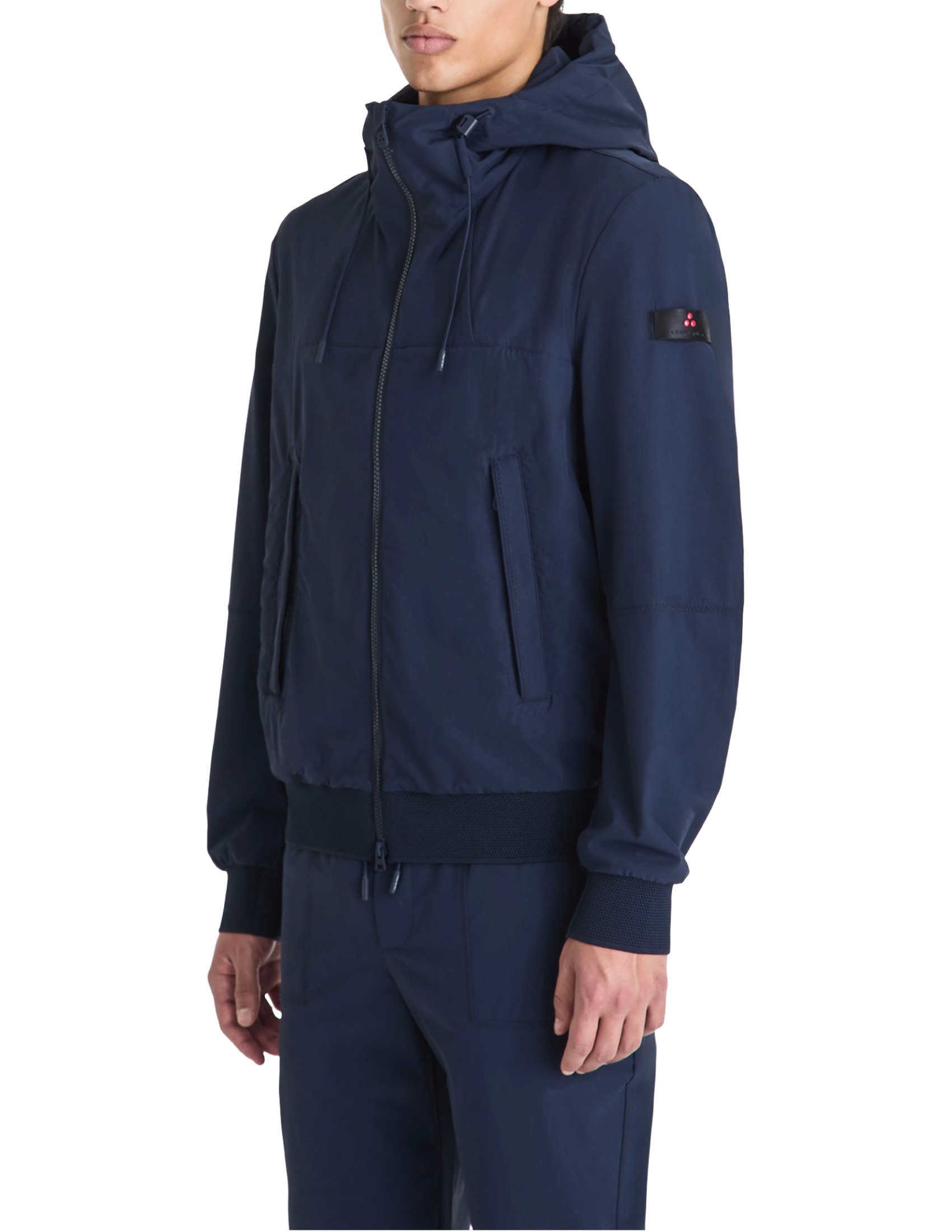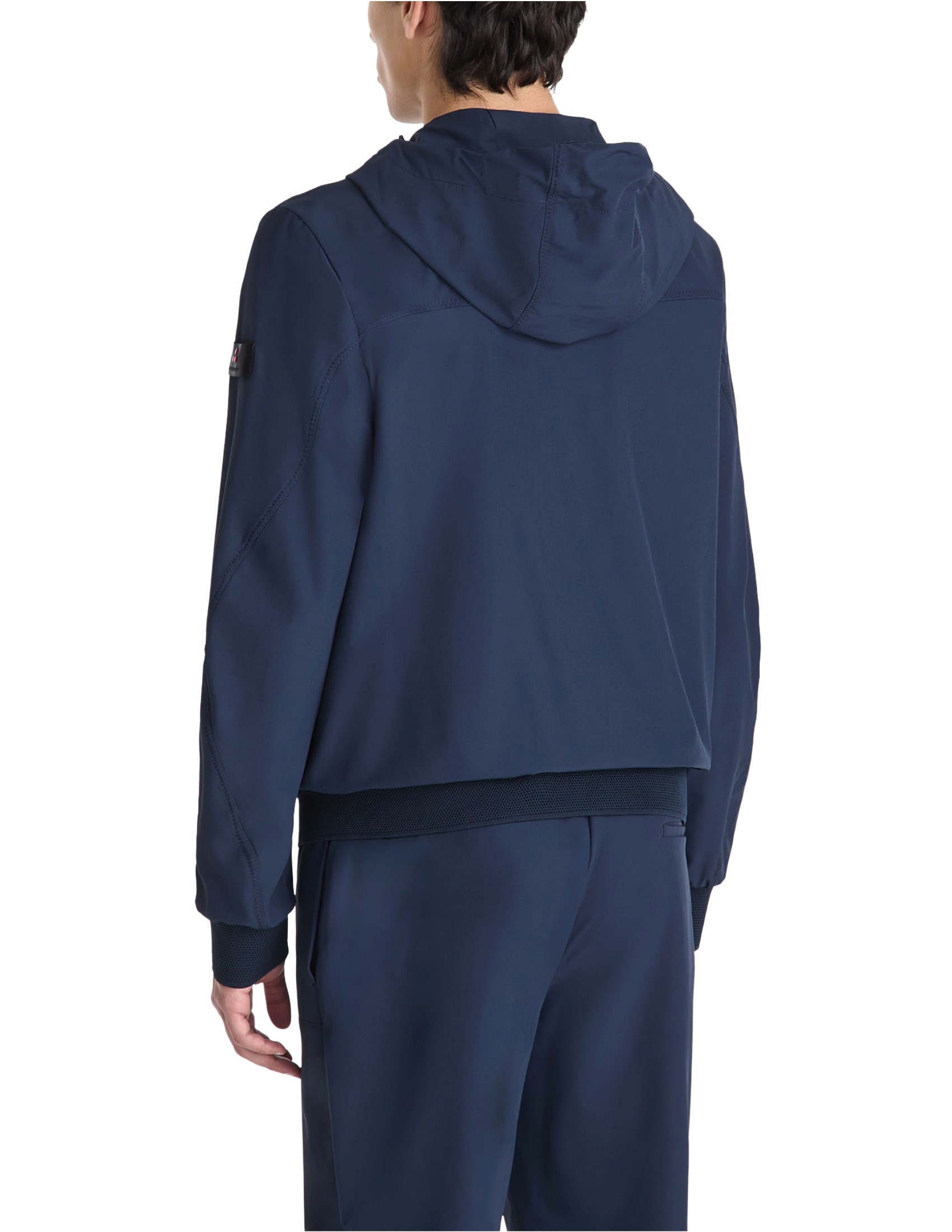 Short hooded jacket made of twisted stretch nylon fabric, characterized by a matte and slightly wavy look, achieved through the use of textured yarns. Featuring a hood with adjustable drawstrings, a full two-way center zip closure, side pockets, and knitted hem and cuffs. Part of the Transeasonal line, which balances advanced materials, essential design, and garments designed to transition effortlessly through the seasons. A sporty piece reinterpreted with a contemporary flair, perfect for combining comfort and style.
