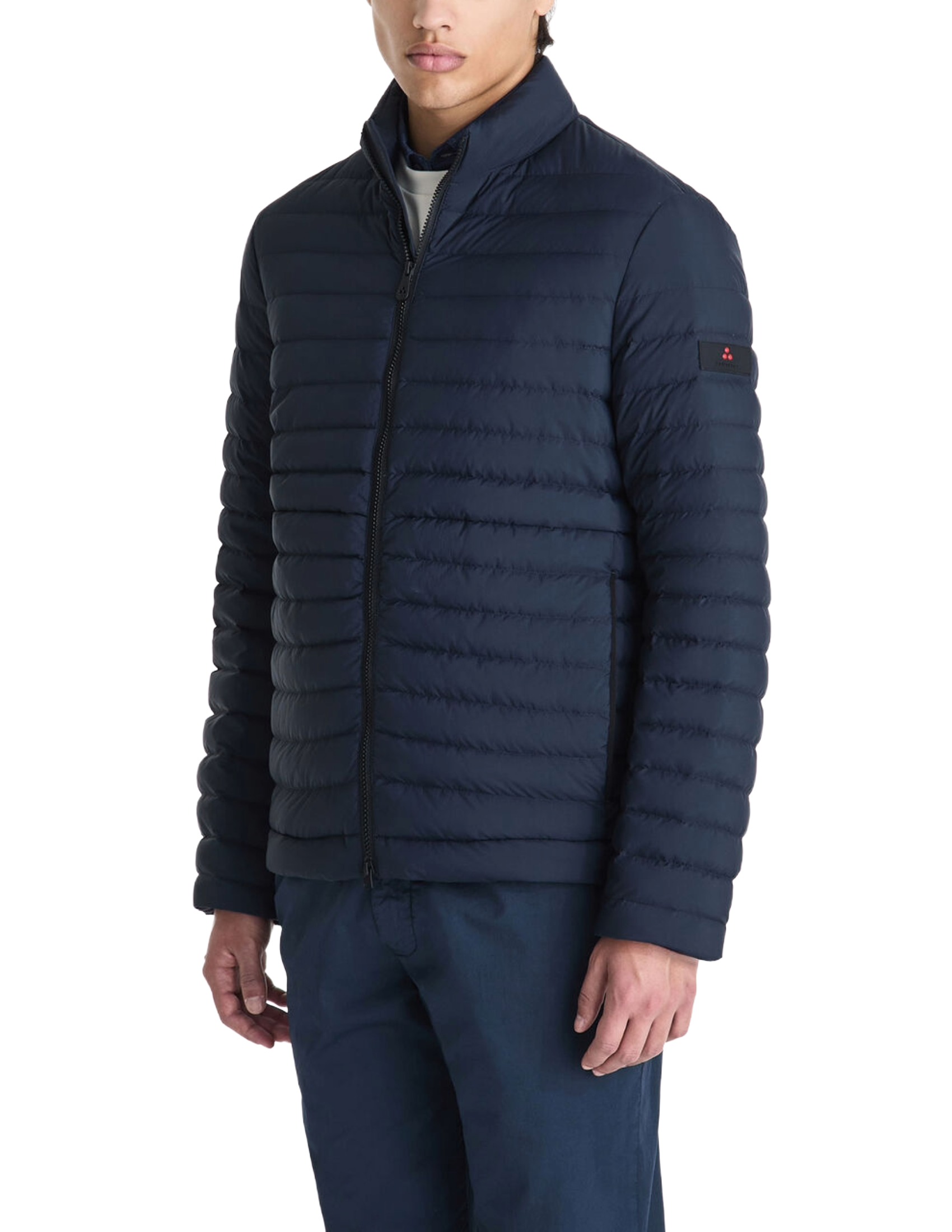 Lightly padded with natural down, this down jacket is made from superlight 20-denier nylon with a semi-matte finish and weighs just 50g. Featuring a stand-up collar, a black two-way zip closure, and side pockets with zip pullers, it offers the comfort and practicality needed to brave the unstable mid-season weather. Its water-repellent properties are achieved with a PFC-free treatment, which does not involve the use of environmentally harmful chemicals. A useful and versatile piece, perfect for the contemporary wardrobe.