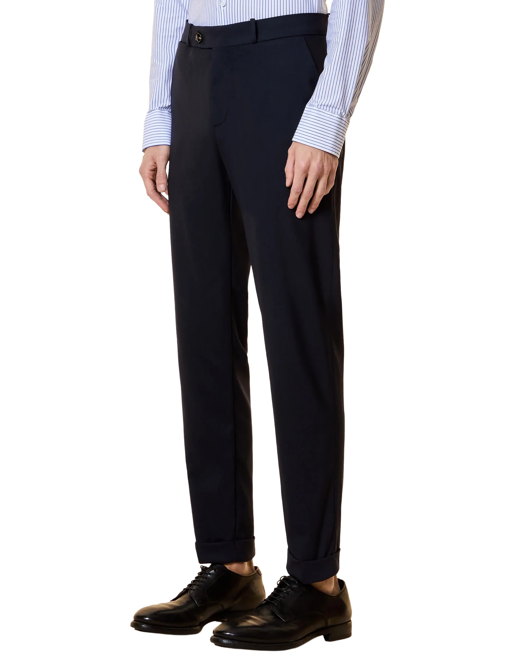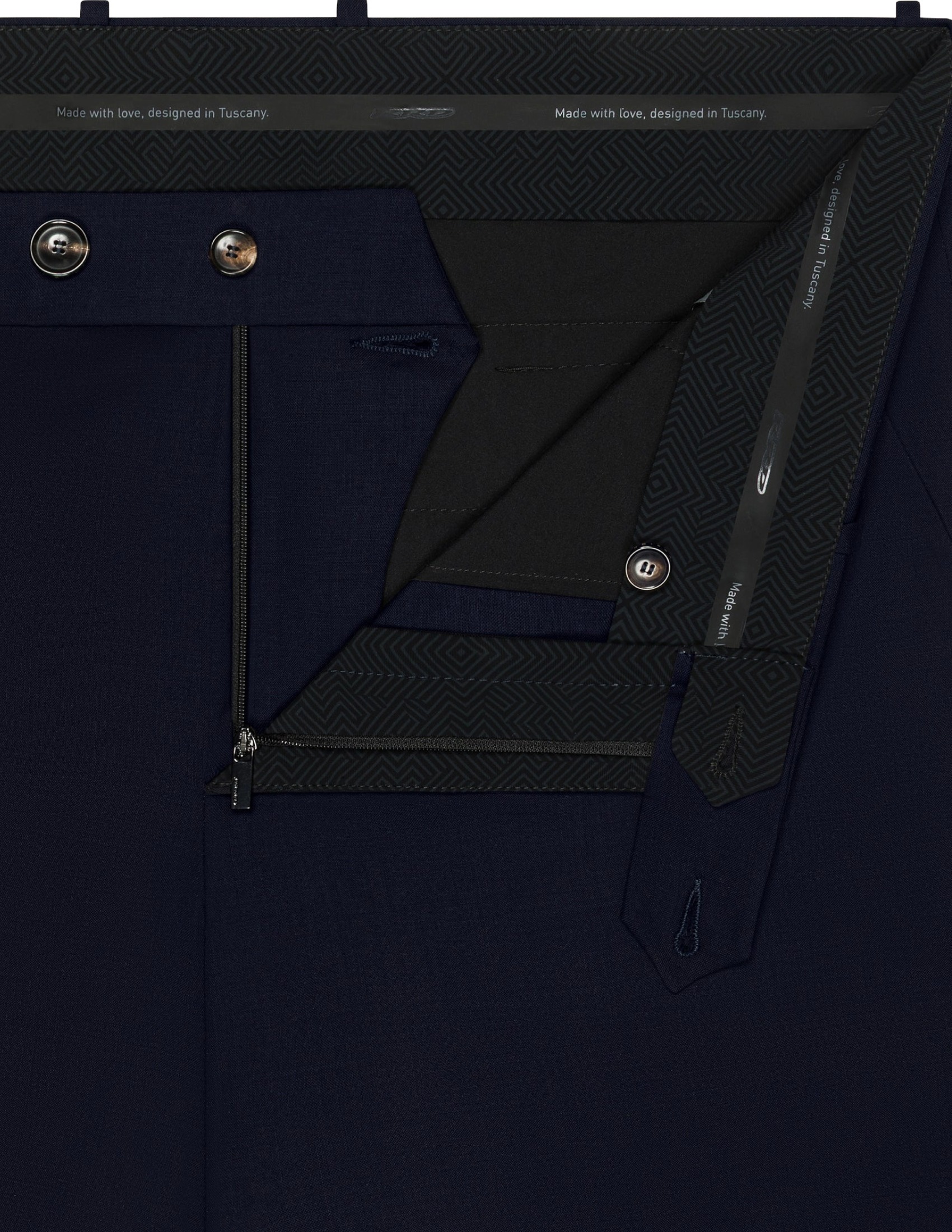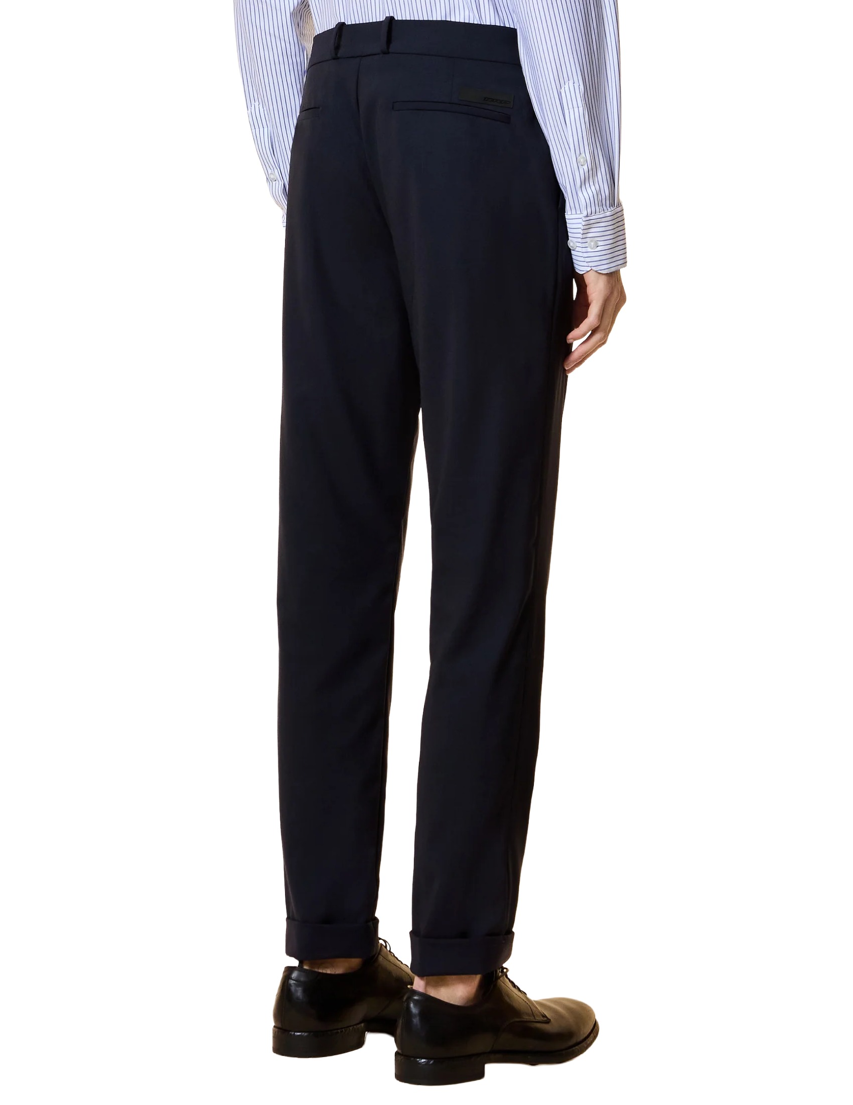 Classic elegance is updated with contemporary sophistication in these chinos crafted from lightweight, cool technical wool. They're crease-resistant and ideal for accompanying professional days and formal events with impeccable style. The slim fit enhances the purity of the line, creating a sleek and intrinsically modern silhouette. The belt loops feature a double horn button closure and a concealed zip fly. Inside, a band printed with the exclusive tone-on-tone Razzle Dazzle monogram adds a sophisticated touch. The side French pockets offer discreet functionality, while the rear welt pockets are embellished with a black micro-injected logo on the right. The turn-up ankle completes the style with a touch of classic elegance, emphasizing its tailored character. Perfect paired with the Summer Wooltech Blazer for a coordinated ensemble, or worn with an Oxford shirt from the collection, the Summer Wooltech Chino Pants are a must-have for a summer wardrobe seeking balance, distinction, and cutting-edge style.