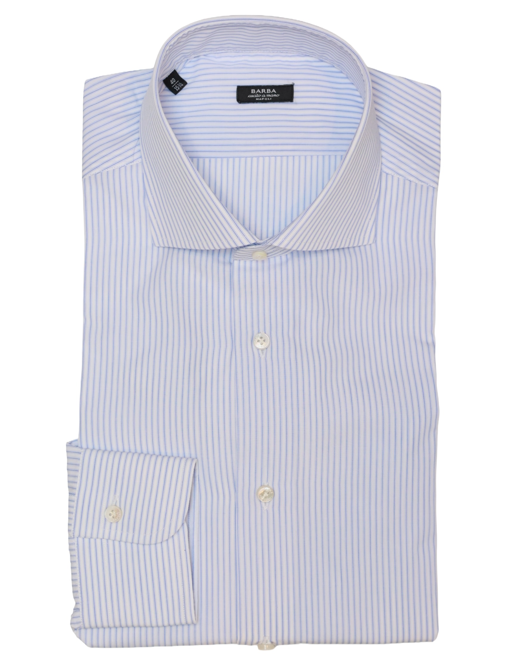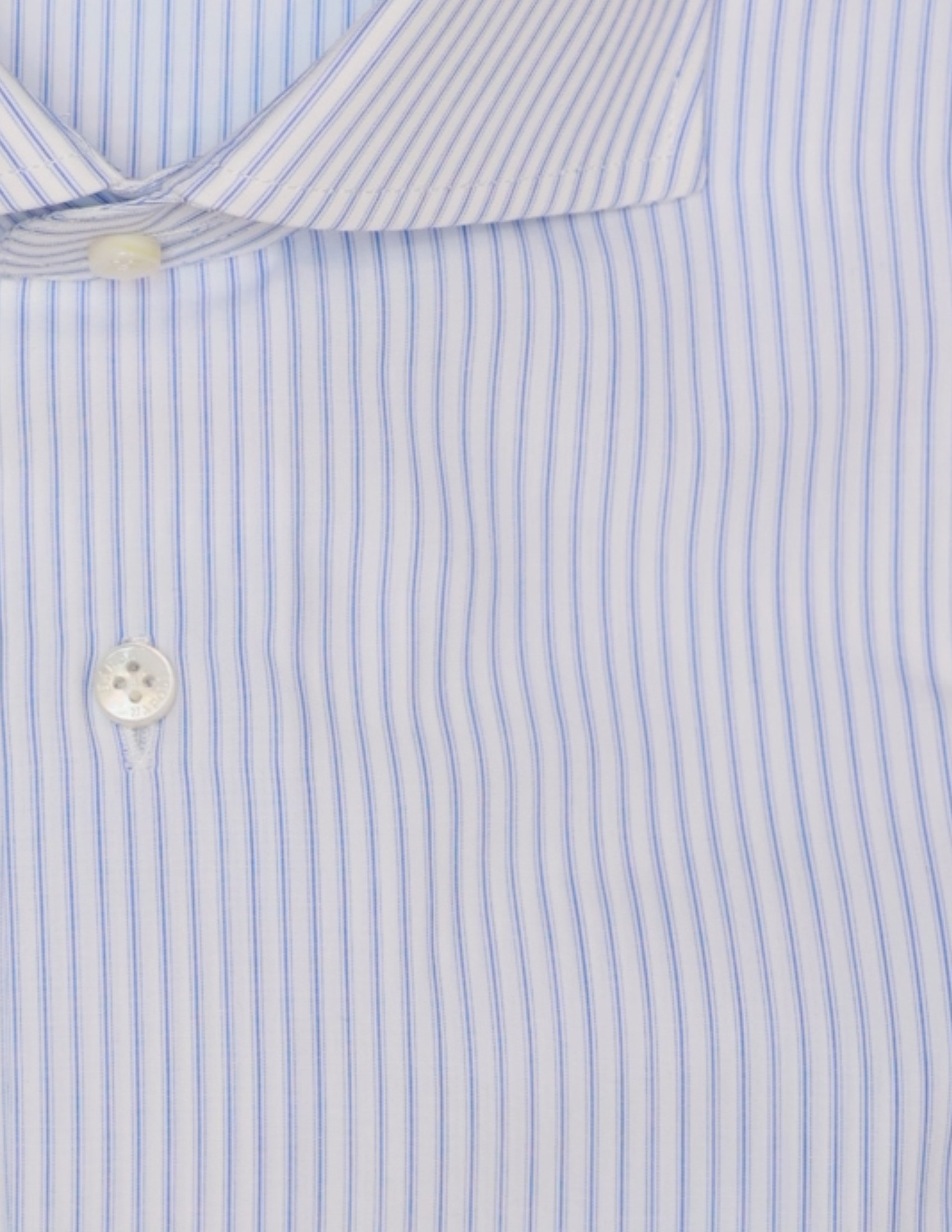 Camicia Sartoriale in 100% Cotone Micro-Riga Azzurra