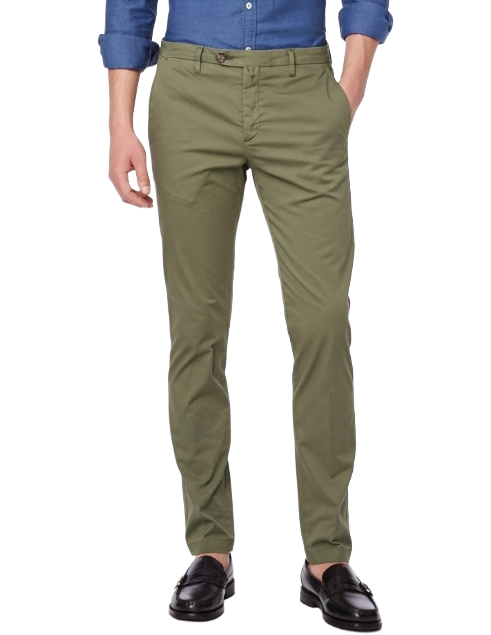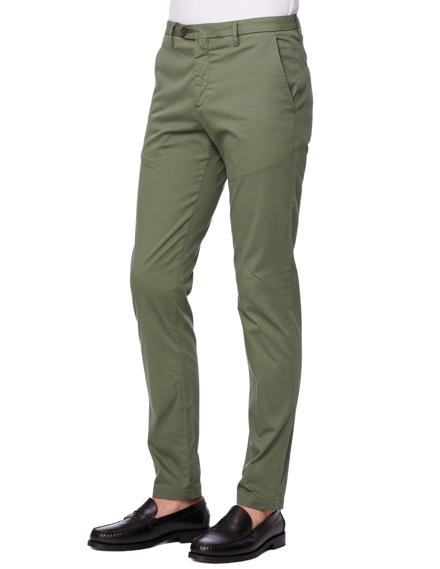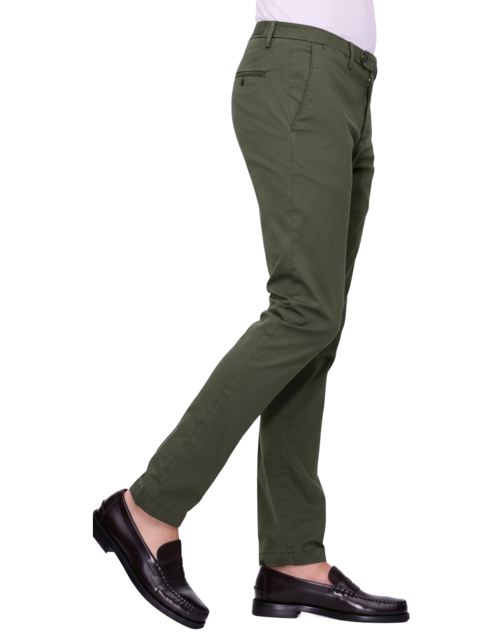 Realizzato in pregiata Gabardina di Cotone Stretch, il capo assicura una libertà di movimento superiore senza perdere la forma originale. Il design è caratterizzato da una linea pulita con tasche anteriori a filo (modello America), che conferiscono un tocco di eleganza formale ideale sia per l'ufficio che per contesti casual-chic.