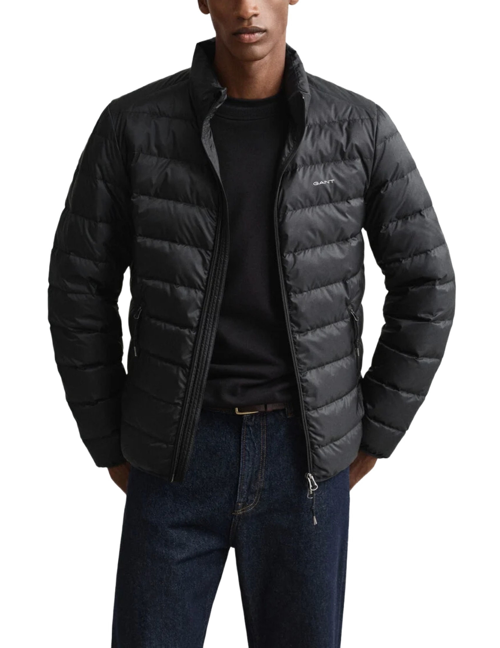 La giacca leggera è un capo dallo stile disinvolto, ideale per vestirsi a strati tutto lanno. È realizzato in poliestere riciclato super leggero e certificato con finitura idrorepellente e presenta imbottitura in 90% piumino e 10% piuma. Ha una vestibilità regular e lunghezza che arriva fino ai fianchi. È lideale da indossare sopra una camicia o sotto un cappotto più pesante nei giorni più freddi. Il colletto rialzato, la zip bidirezionale, le tasche laterali e lo stemma con logo in gomma sul petto completano il look. Il capo presenta un trattamento DWR (durable water repellent) che aiuta a disperdere lacqua in caso di pioggia leggera. Piumino con fill power di 650 leggermente isolante.