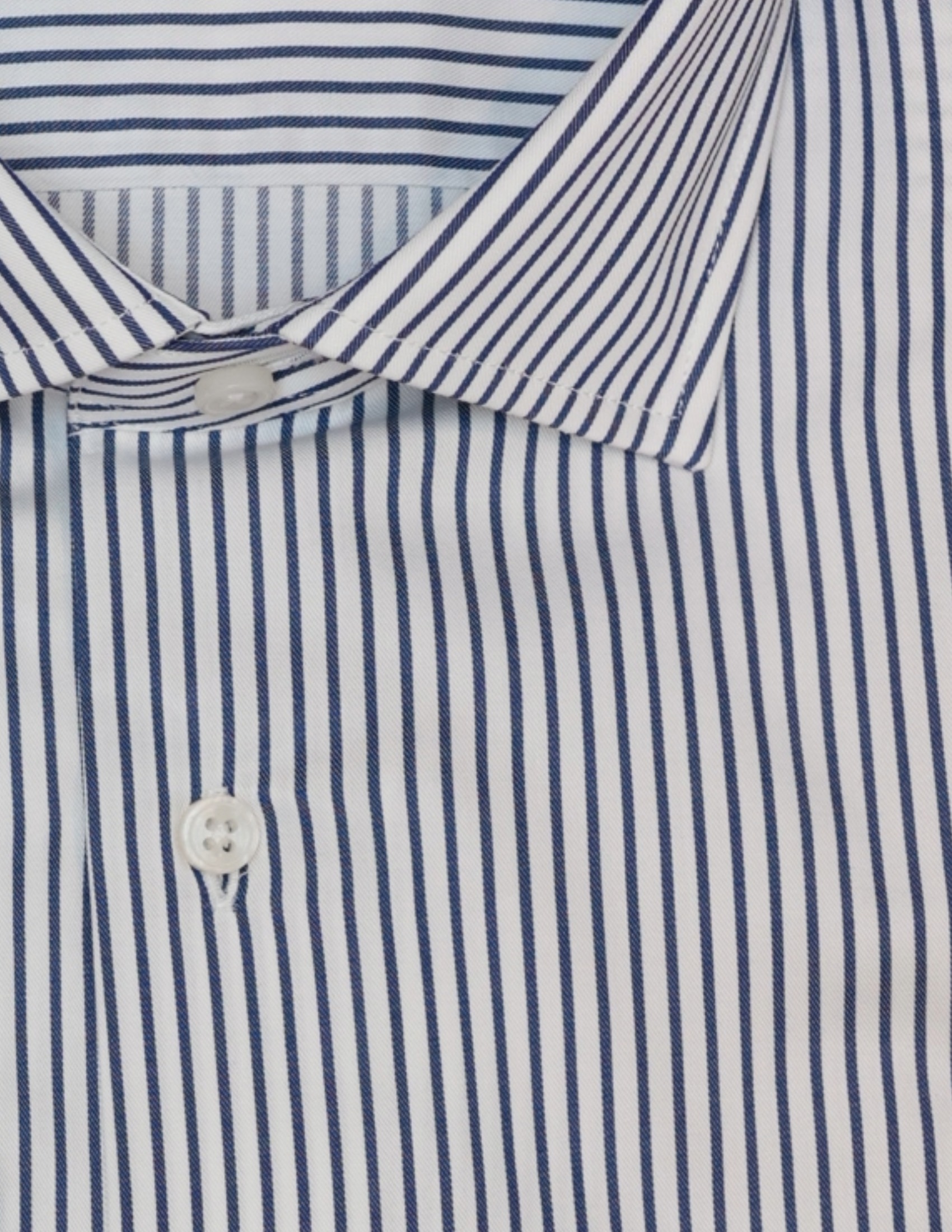 Dettagli: Fantasia a Righe Sottili, Collo Semifrancese, Polsini classici