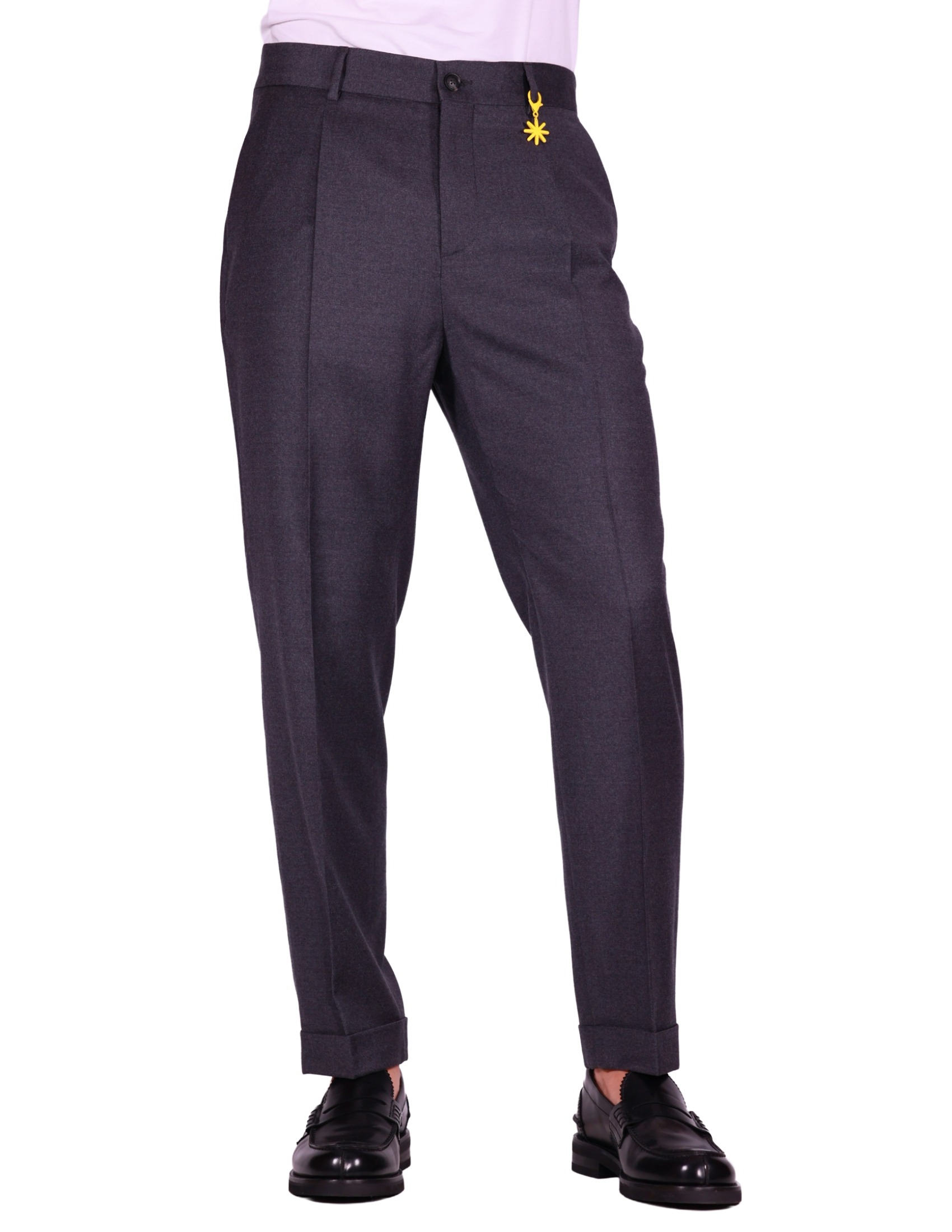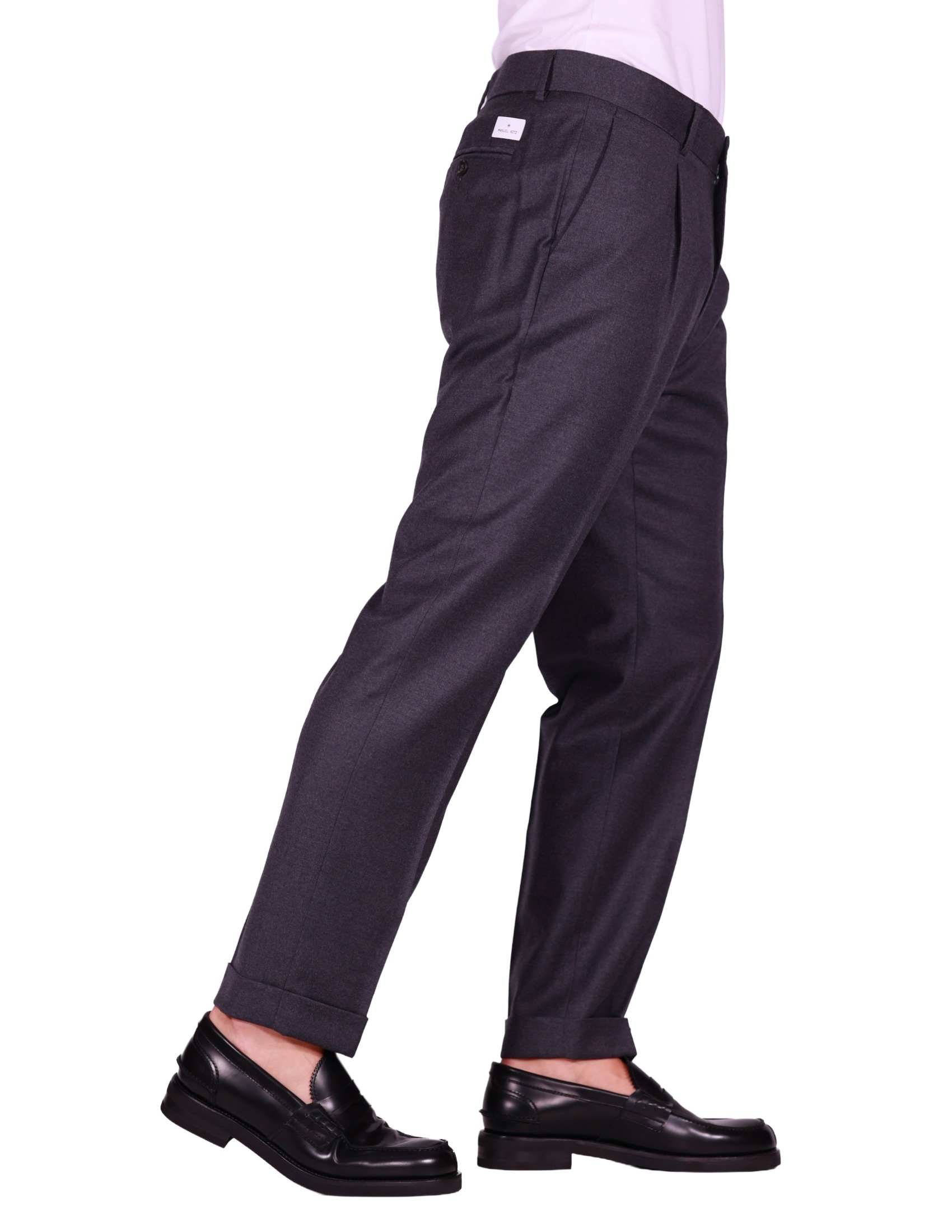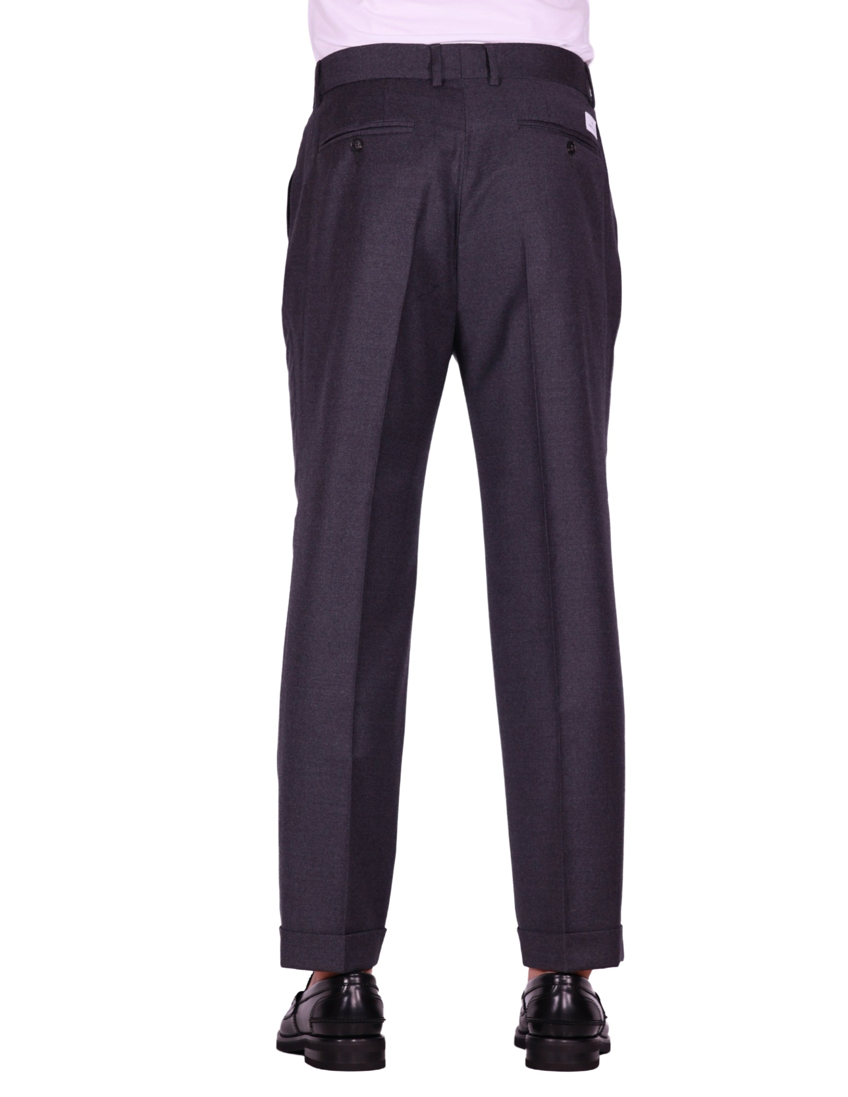 Pantalone Sartoriale con Pince in Lana Comfort Grigio Scuro