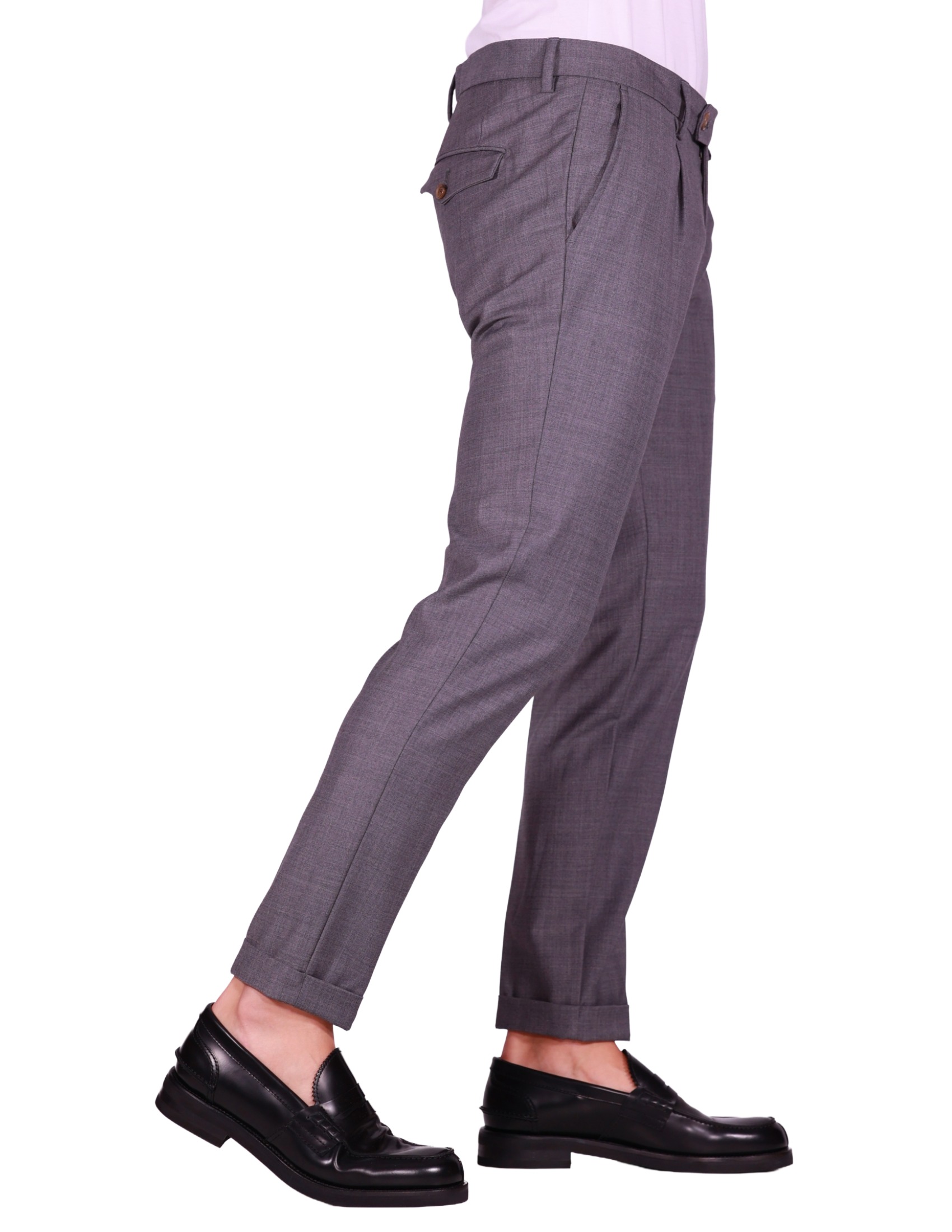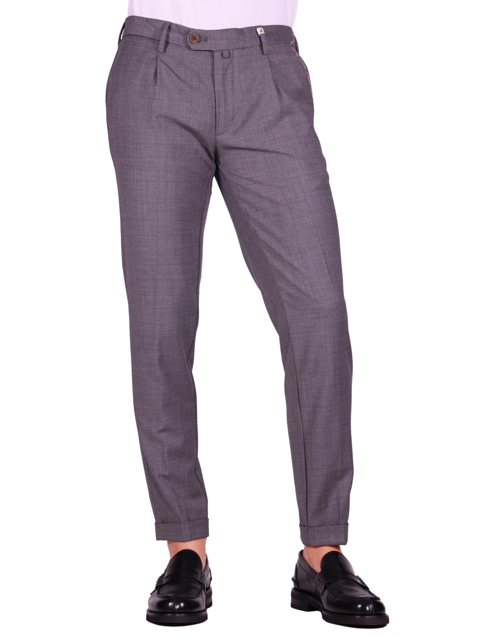 Questo Pantalone Myths è un capo versatile che unisce la formalità della lana alla comodità del tessuto stretch, perfetto per l'ufficio e il tempo libero. Realizzato con una composizione in Lana Prevalente (52% Lana, 43% Poliestere, 5% Elastan), il pantalone offre un'ottima tenuta, morbidezza e una vestibilità flessibile grazie all'Elastan. Il colore Grigio Medio è un classico versatile. Il design presenta una pince (piega) singola e una vita sartoriale, con tasche a filo posteriori chiudibili con bottone. Il taglio è affusolato e il fondo con risvolto ne esalta l'estetica contemporanea. Un Pantalone Myths: lana stretch, taglio sartoriale con pince e massimo comfort.