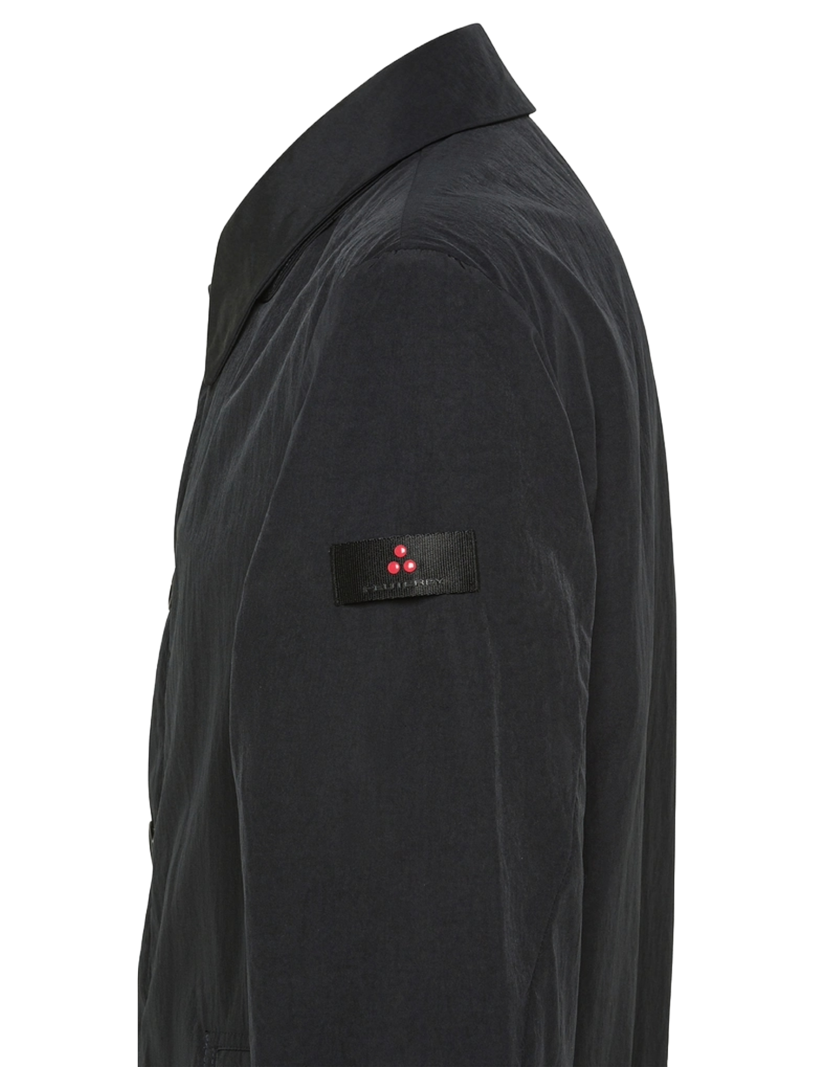 Trench realizzato in popeline di nylon e microfibra di poliestere dalla texture opaca, compatto e morbido al tatto, grazie alla tintura ad alte temperature. Un modello dalleleganza rigorosa che presenta chiusura centrale con bottoni, due ampie tasche laterali e lacci al fondo manica con asola e bottone. Dotato inoltre di membrana traspirante sul rovescio, il tessuto è waterproof e idrorepellente. Un capo sleek e raffinato, ideale per la mezza stagione in città o il tempo libero.