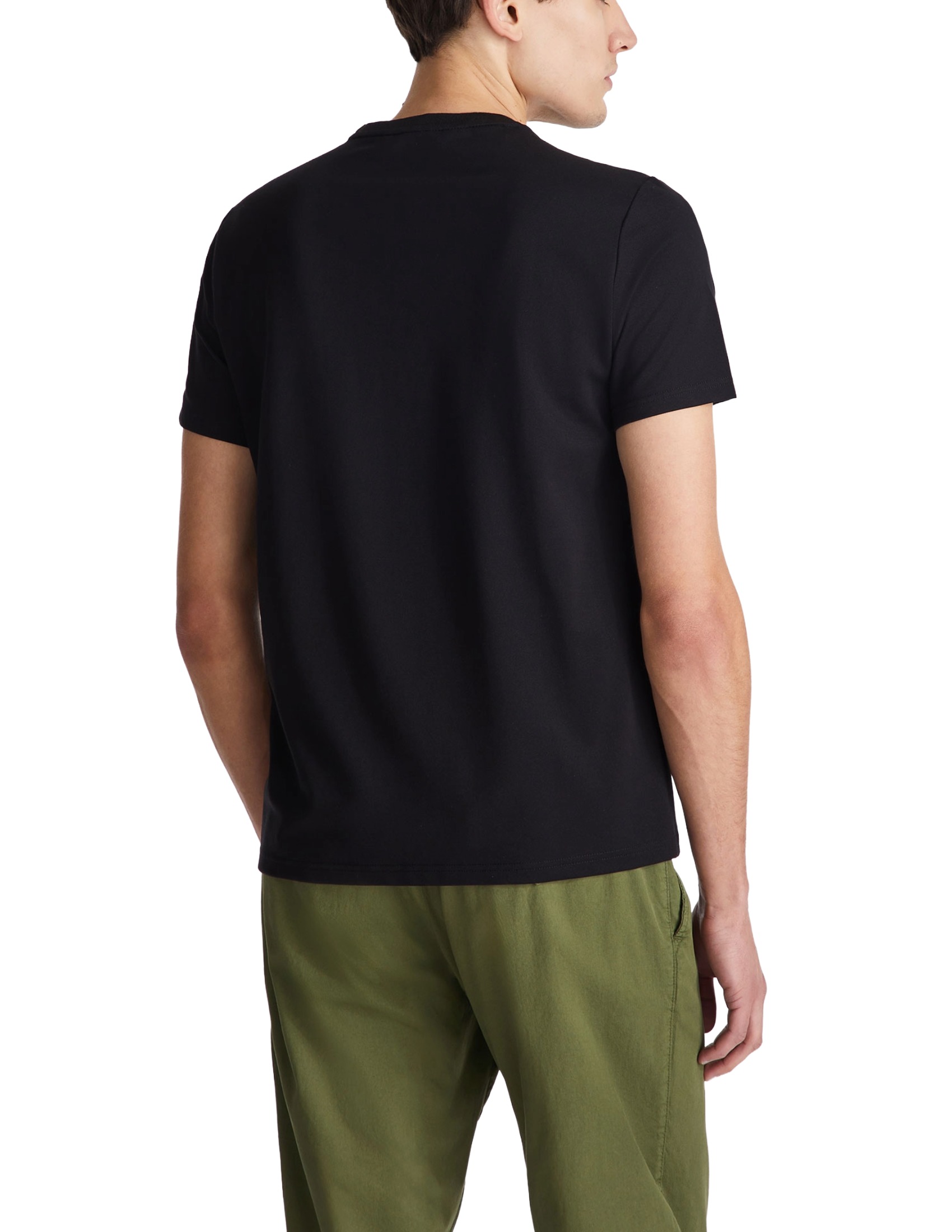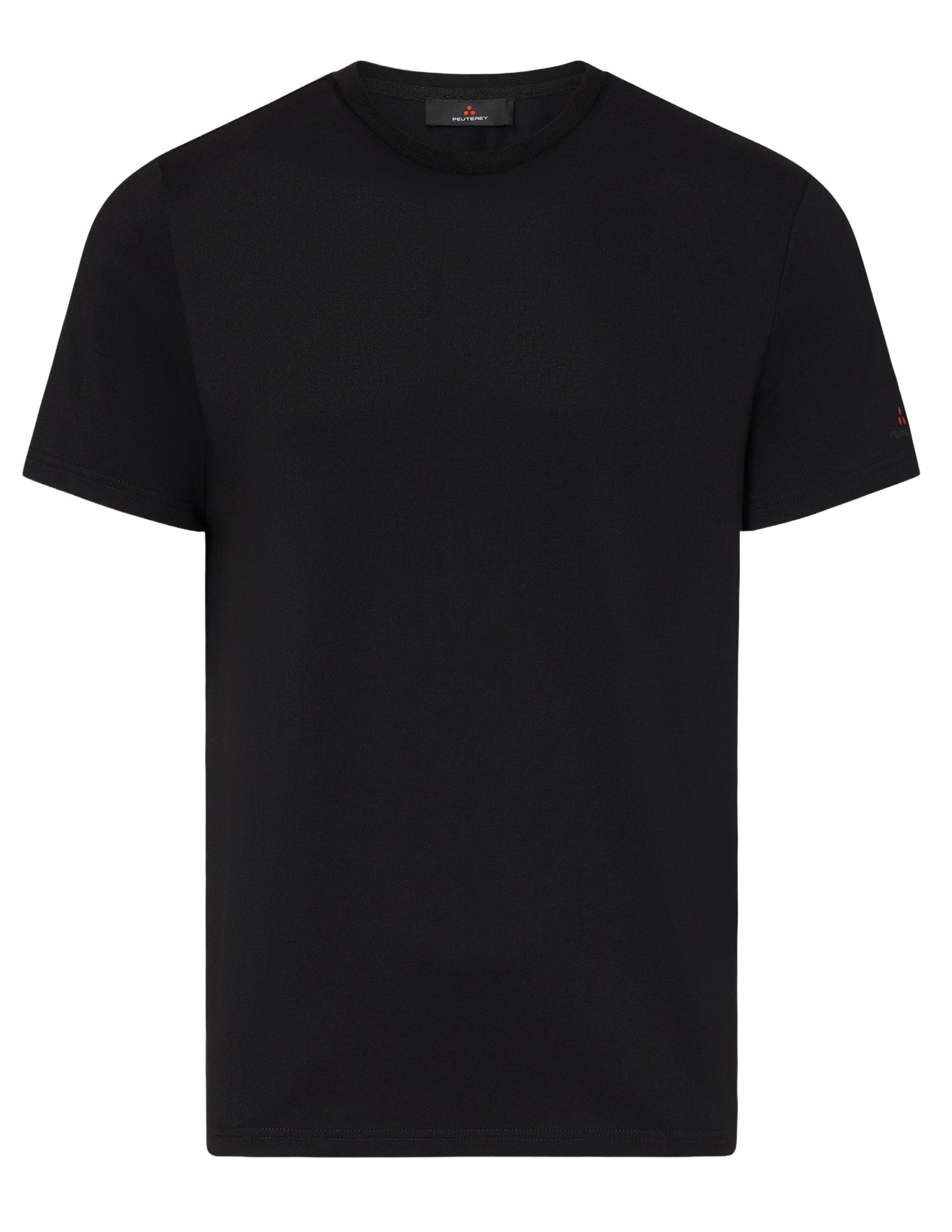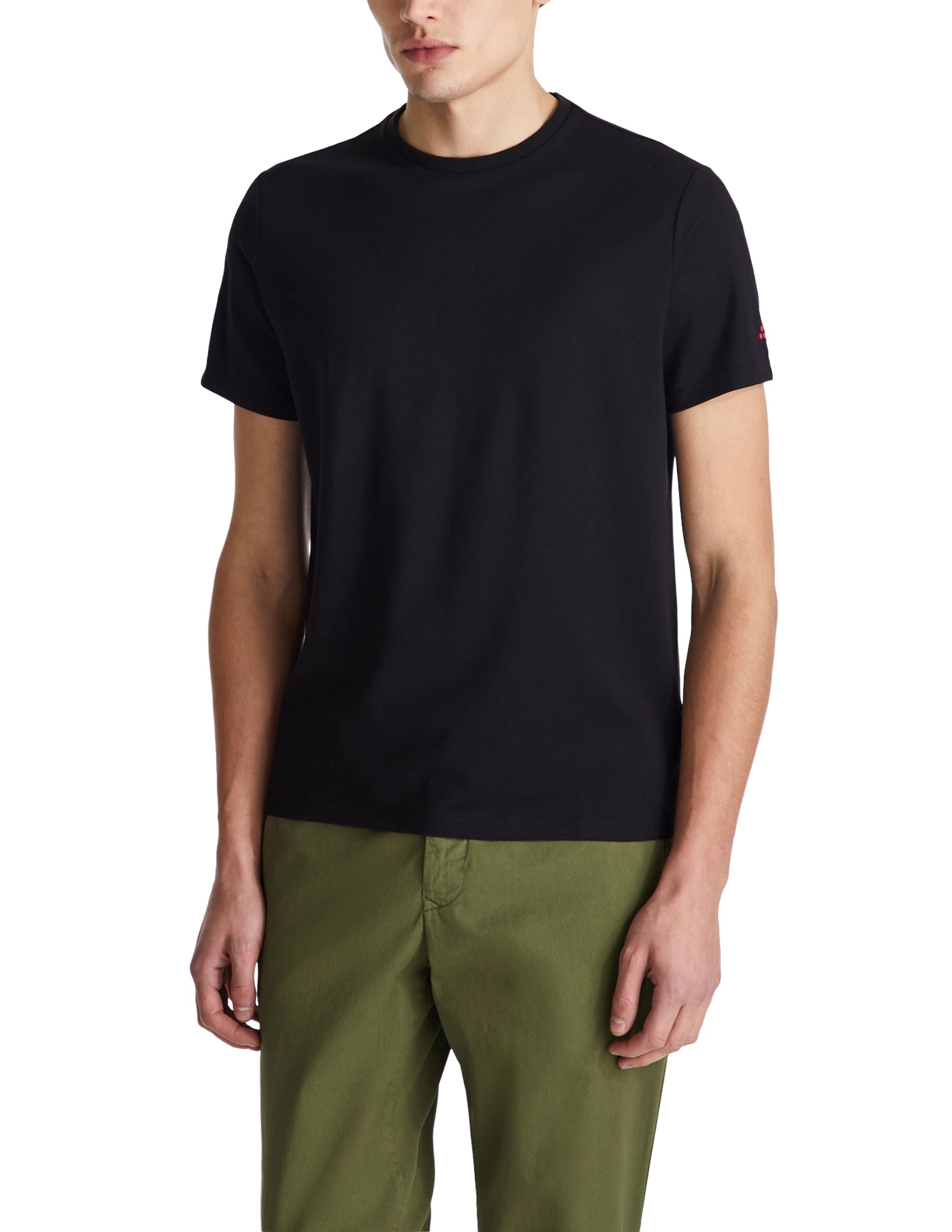T-shirt in piquet stretch di cotone e seta, tinto in pezza, con logo ricamato sulla manica sinistra. Realizzata in un tessuto morbido, leggero e traspirante, è ideale per affrontare per la bella stagione con stile e comfort. Un modello versatile e moderno, perfetto come base per ogni guardaroba estivo, grazie alle sue infinite possibilità di abbinamento, per uno stile sempre impeccabile.