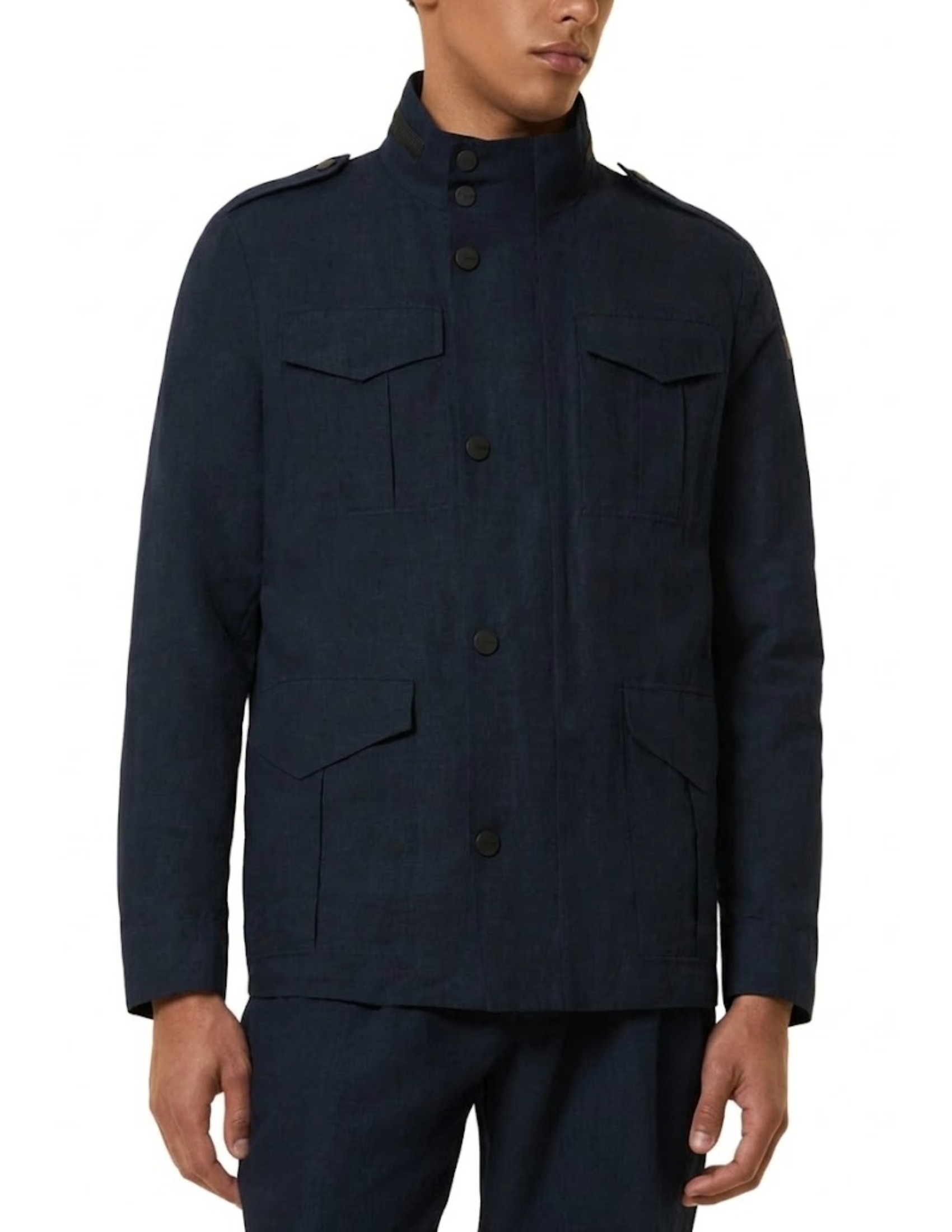 La raffinata reinterpretazione di unicona del guardaroba casual maschile è perfetta per la bella stagione e per accompagnarti con stile in viaggio. Realizzata in una leggera e resistente tela di lino misto cotone dalleffetto delicatamente used, offre una sensazione di autenticità e comfort. Il tradizionale colletto verticale cela un cappuccio di servizio chiuso dalla zip metallica nascosta. Sul davanti, la pattina con bottoni a pressione metallici si sovrappone alla zip a doppio cursore. Le quattro tasche a soffietto con aletta a toppa e le spalline definiscono il design in chiave contemporanea. Le nastrature selettive interne conferiscono struttura al capo, mentre il logo nero a microiniezione sulla manica sinistra firma con una nota di esclusività la creazione dal carattere deciso e ricercato.
