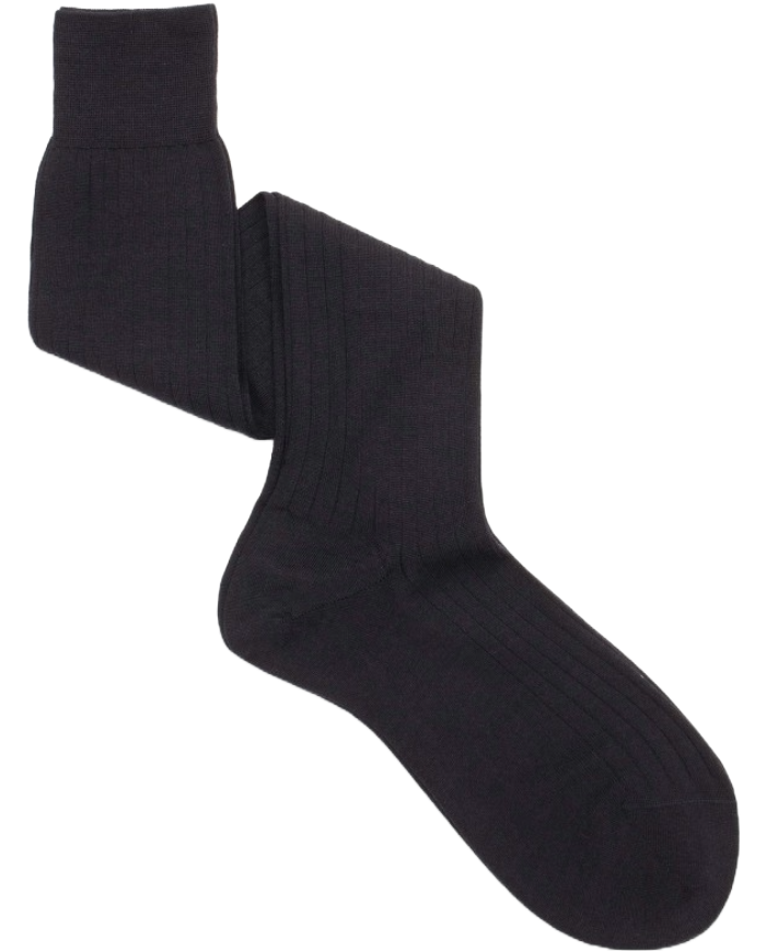 Immergiti nel mondo del comfort e dell'eleganza con queste squisite calze lunghe in lana dalla costa classica. Perfette per gli amanti della qualità e dello stile sobrio.