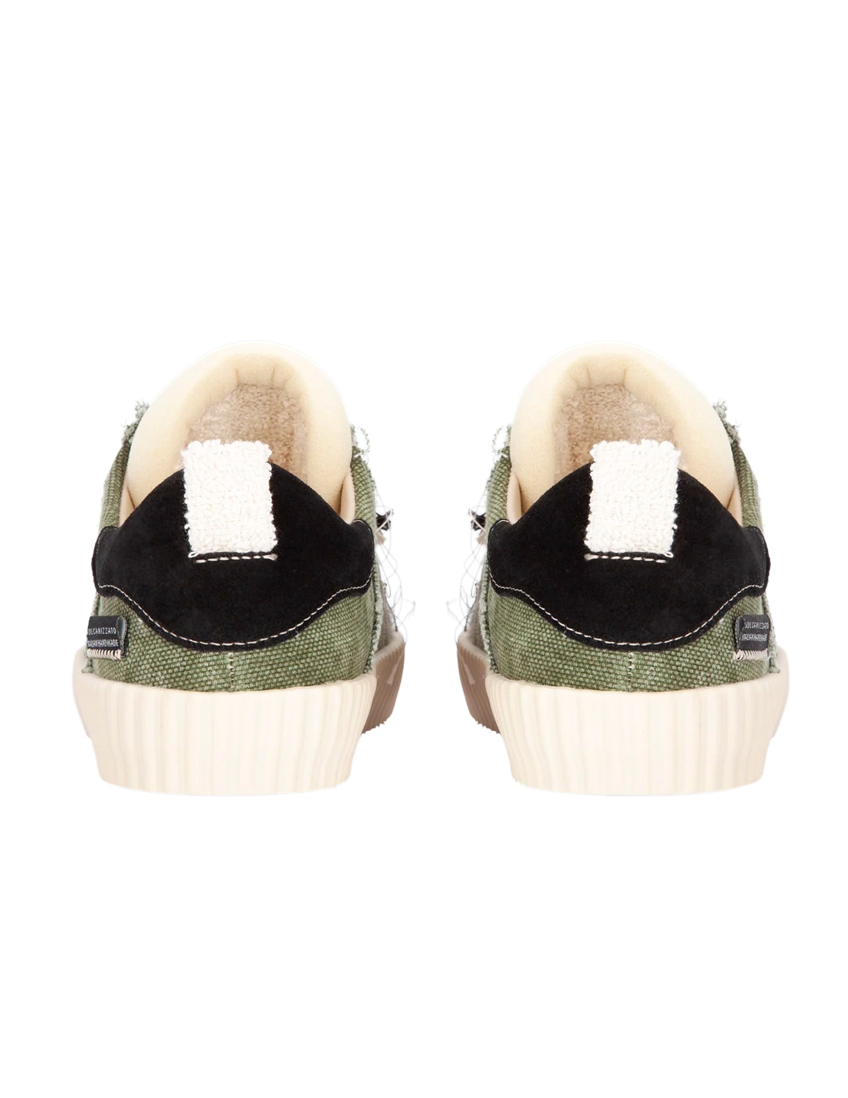 Le sneakers Wavy Olona offrono stile e comodità. I dettagli di questo modello sono unici perché sono scarpe realizzate a mano e quindi ogni paio è differente dallaltro. Nella variante Oliva i lacci sono intrecciati con due colori, beige/nero. A renderla particolare sono le cuciture a vista, apprezzate dai veri intenditori.