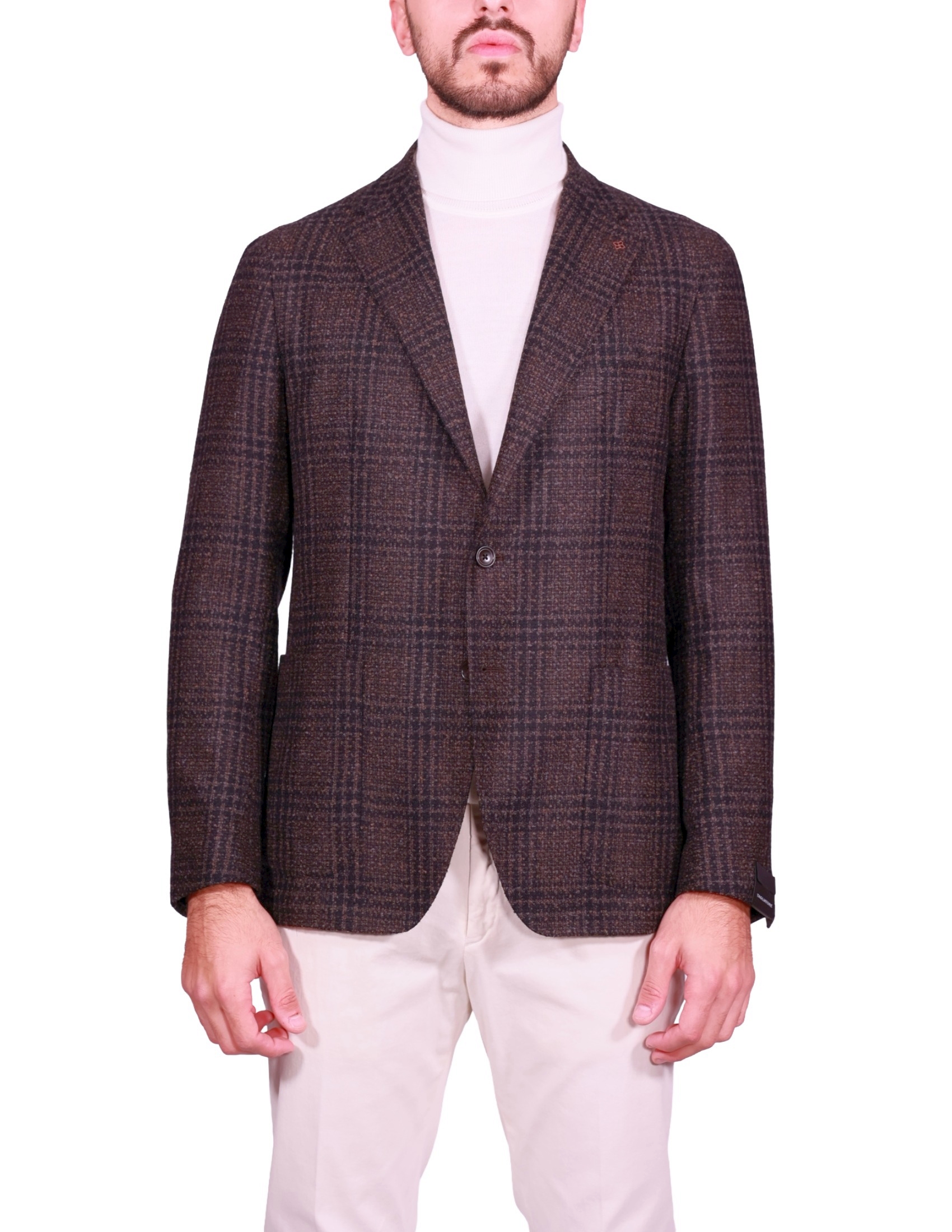 Blazer Monopetto in Lana a Fantasia Quadri moro