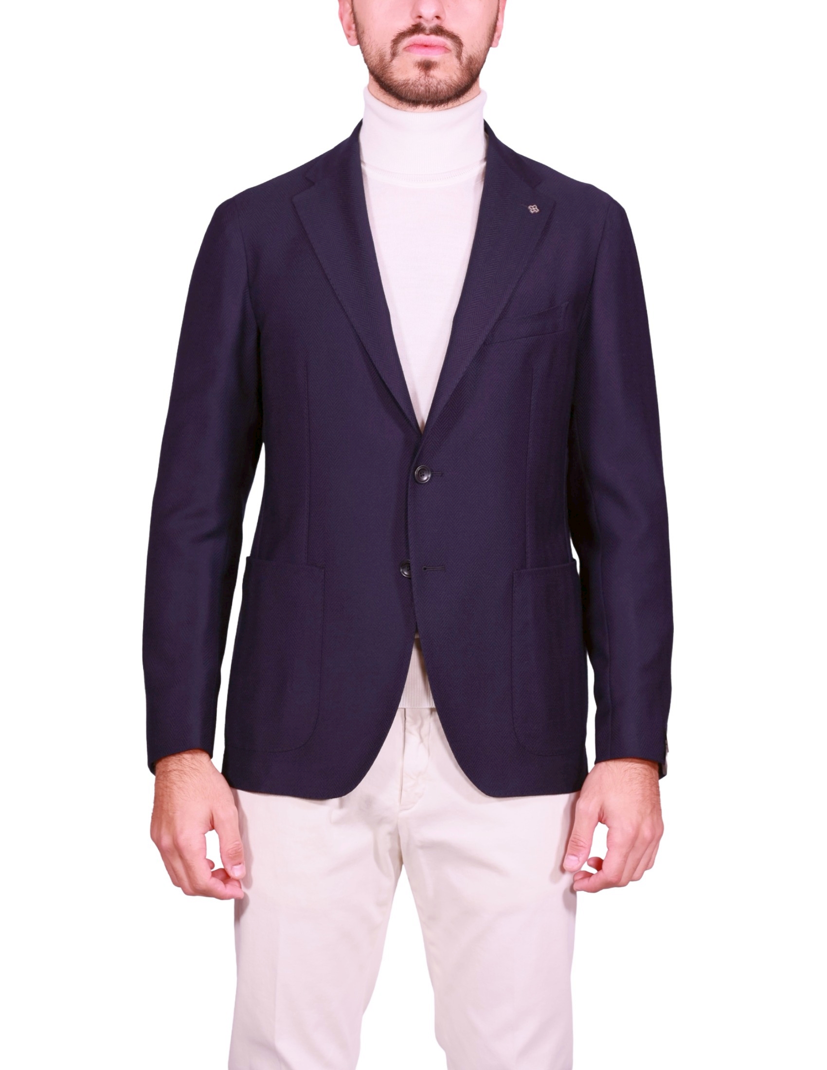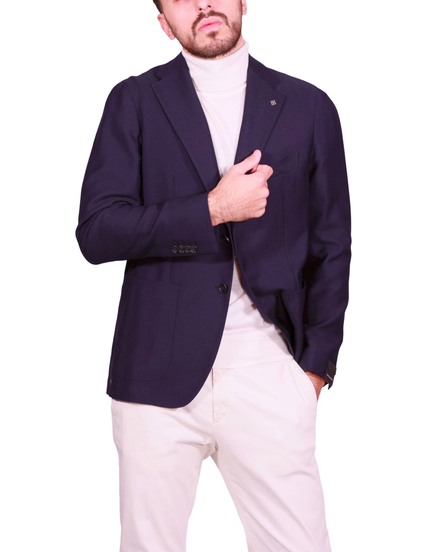 Un Blazer Tagliatore: lana pura e stretch per un'eleganza confortevole e impeccabile.