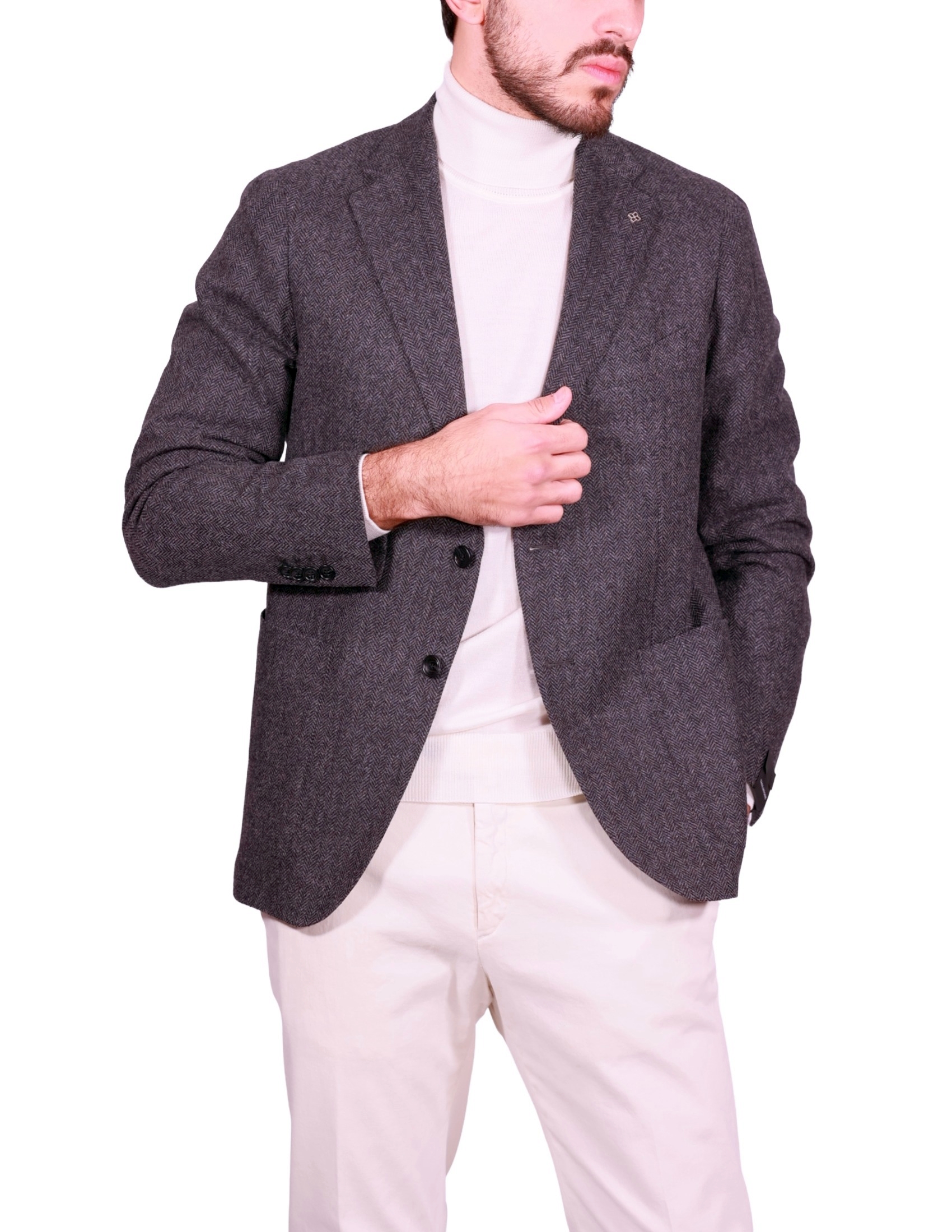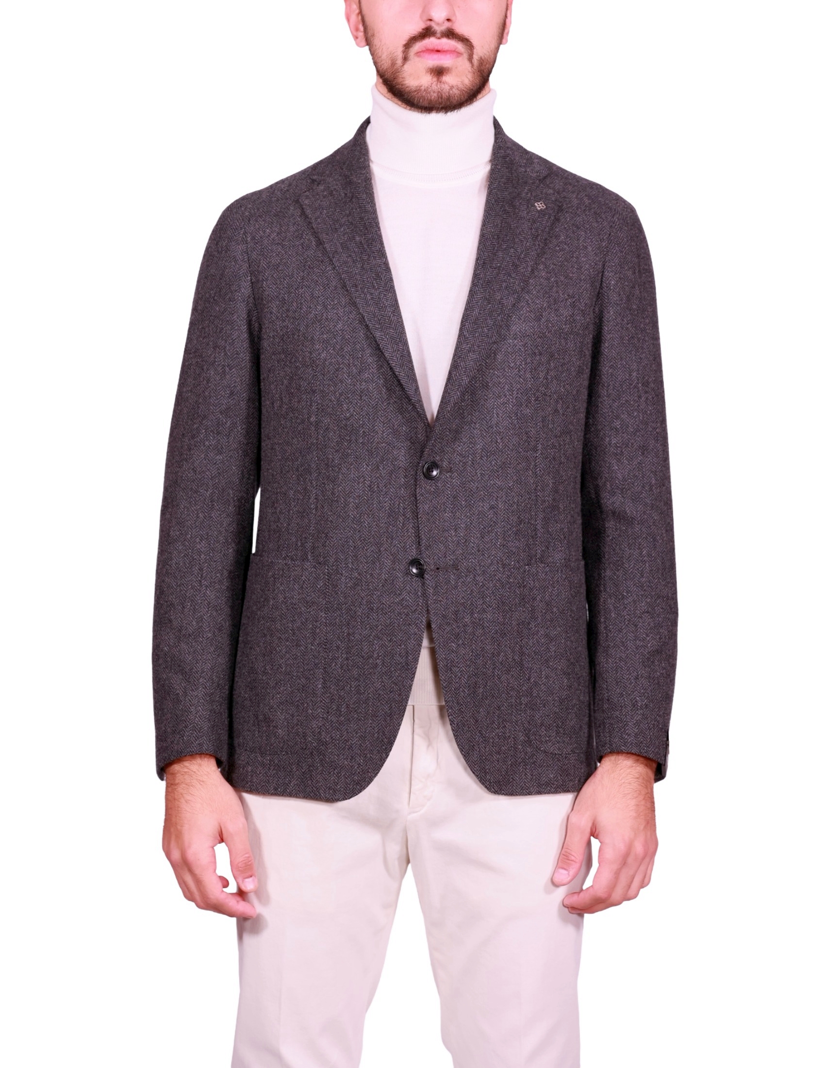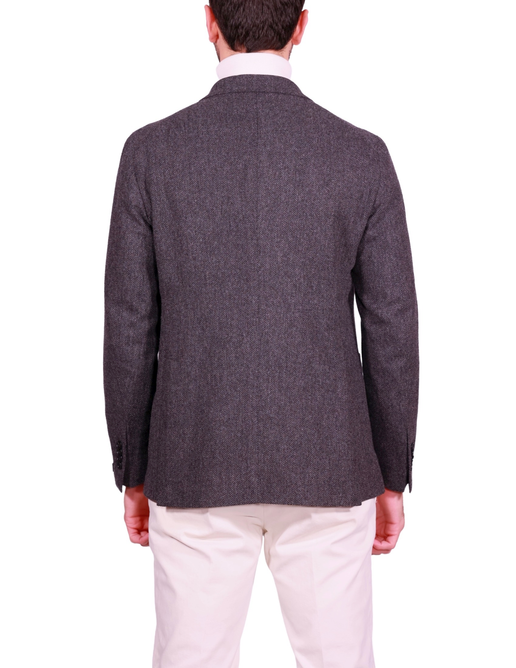 Dettagli: Trama Spigata (Herringbone), Tasche a toppa, Pin logato sul risvolto